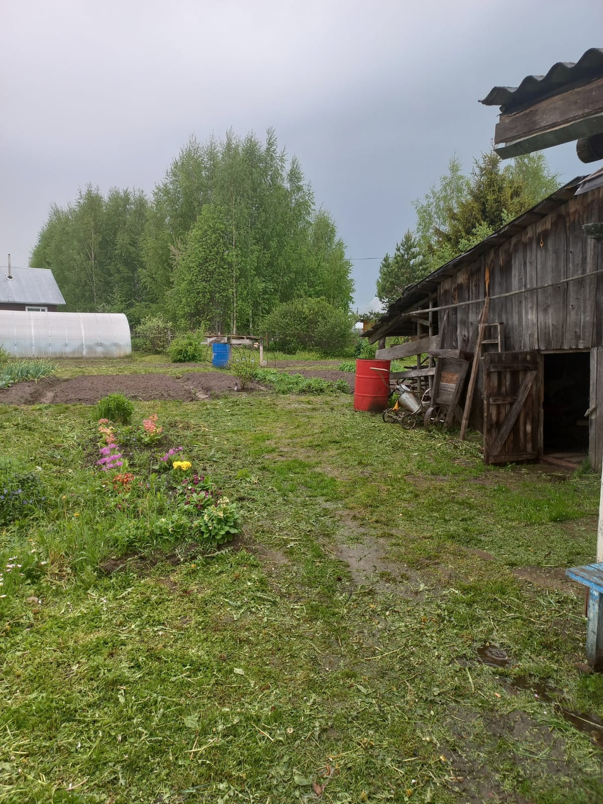 Участок ровный, разработан, много насаждений, цветов, кустов, деревьев. На участке теплица 3*6 поликарбонат, баня 3*3 с жилыми комнатами и верандой. Хорошие подъездные пути круглый год, соседи проживают круглогодично.