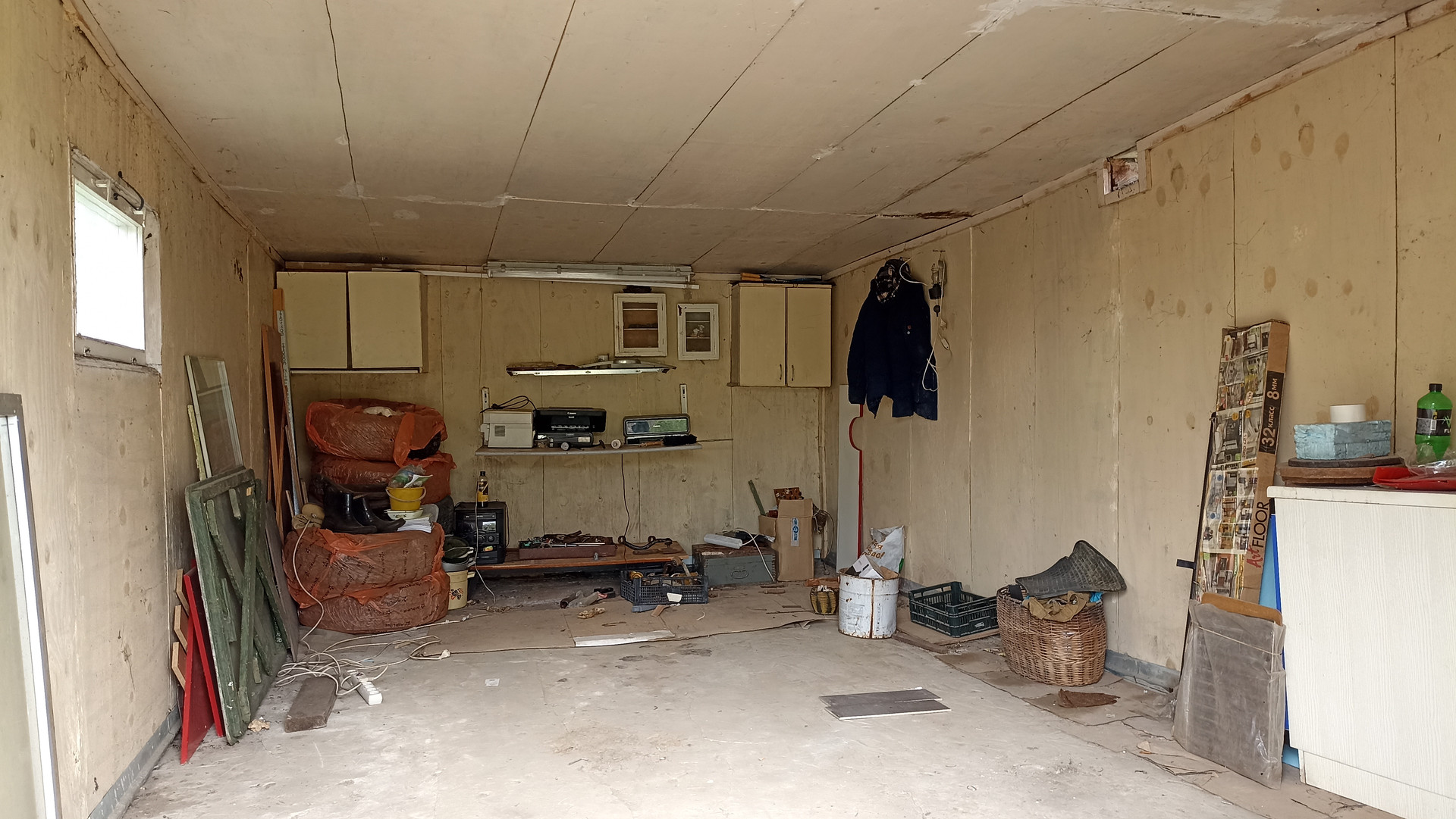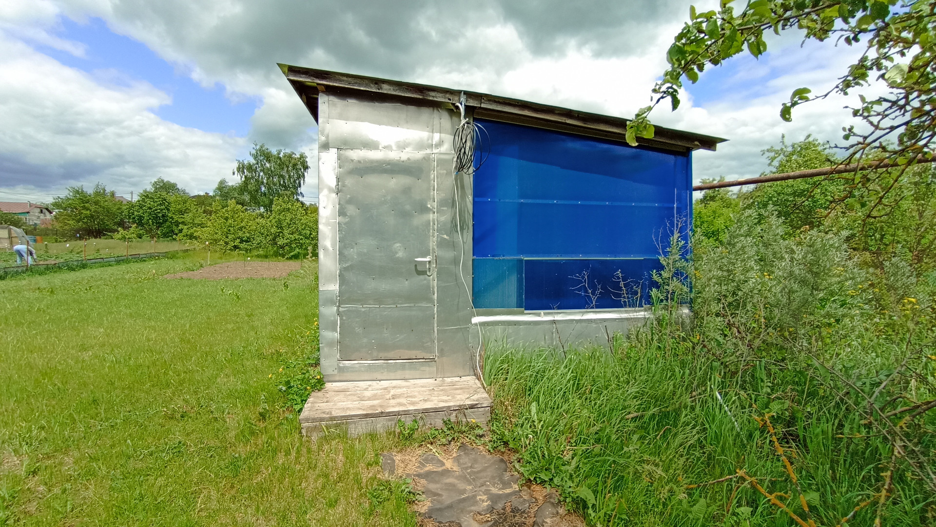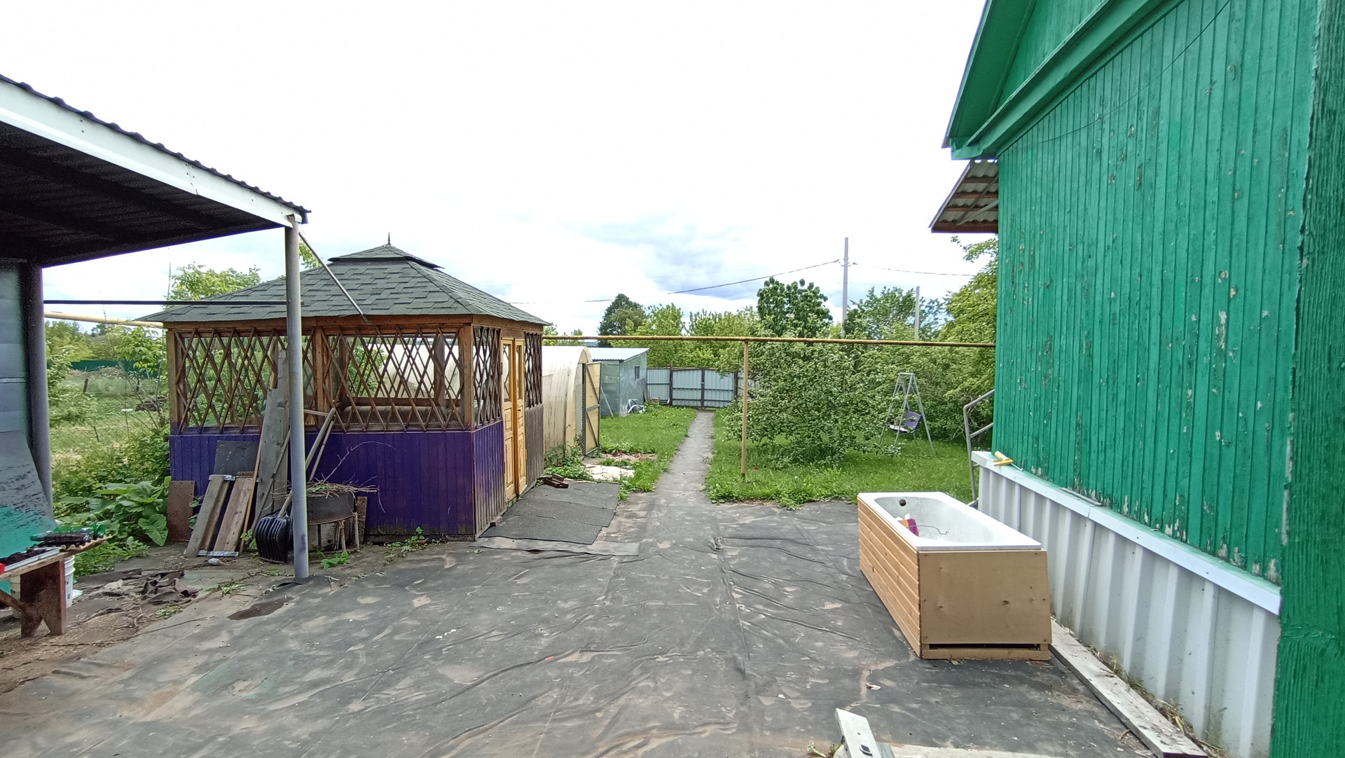 - Гараж (материал стен - шпалы), обшит железом.