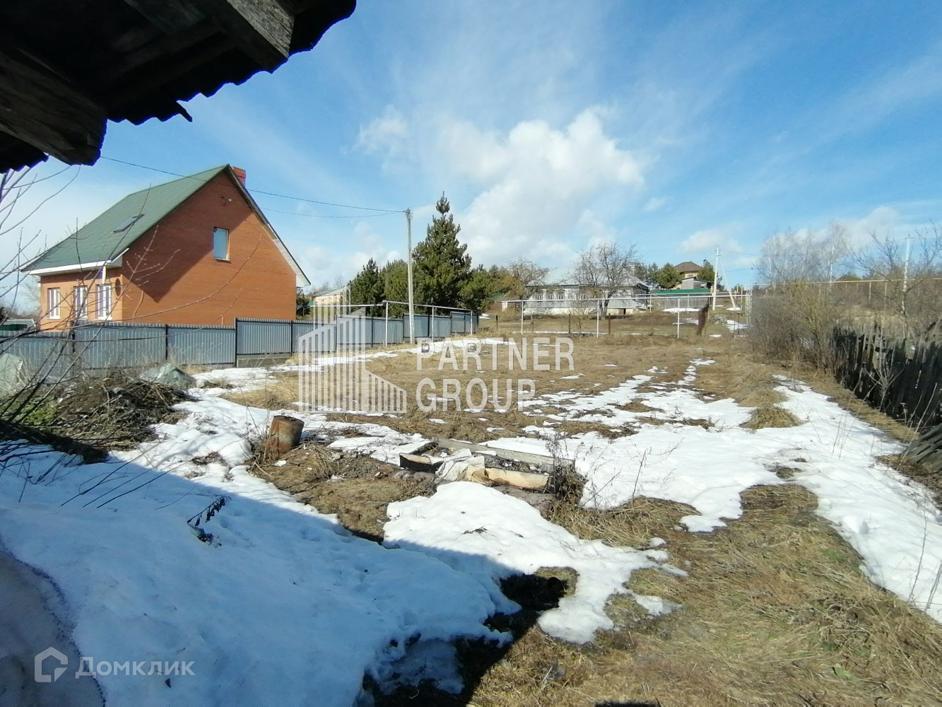 Участок прямоугольный, огорожен сеткой рабицей. Дом стоит посередине участка. Перед домом растет много плодовых деревьев , за домом ухоженный участок под посадку овощей.