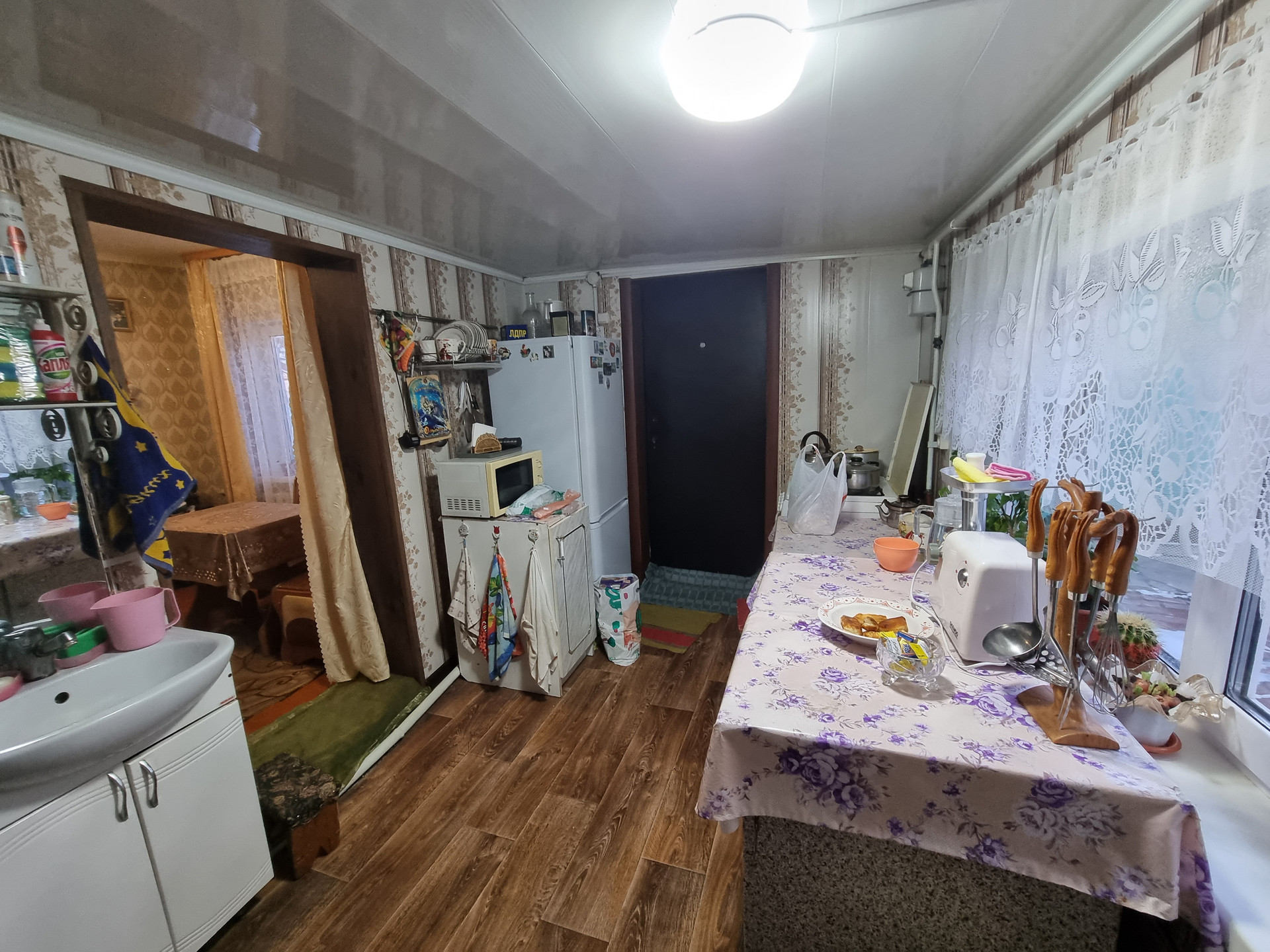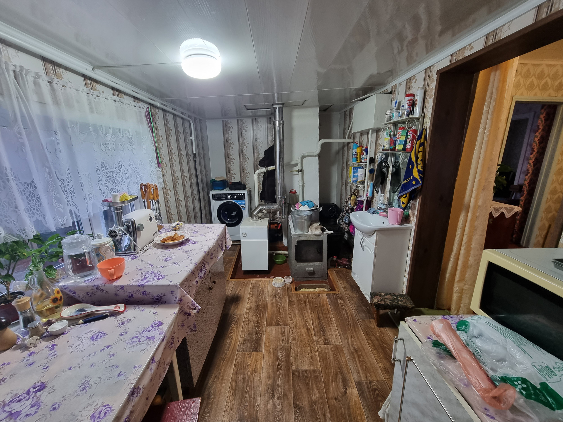 Дом очень тёплый, хороший двор, баня ,летняя кухня,отопление газовое, и печное, водопровод в доме, хозпостройки.