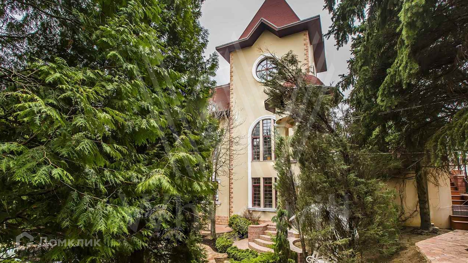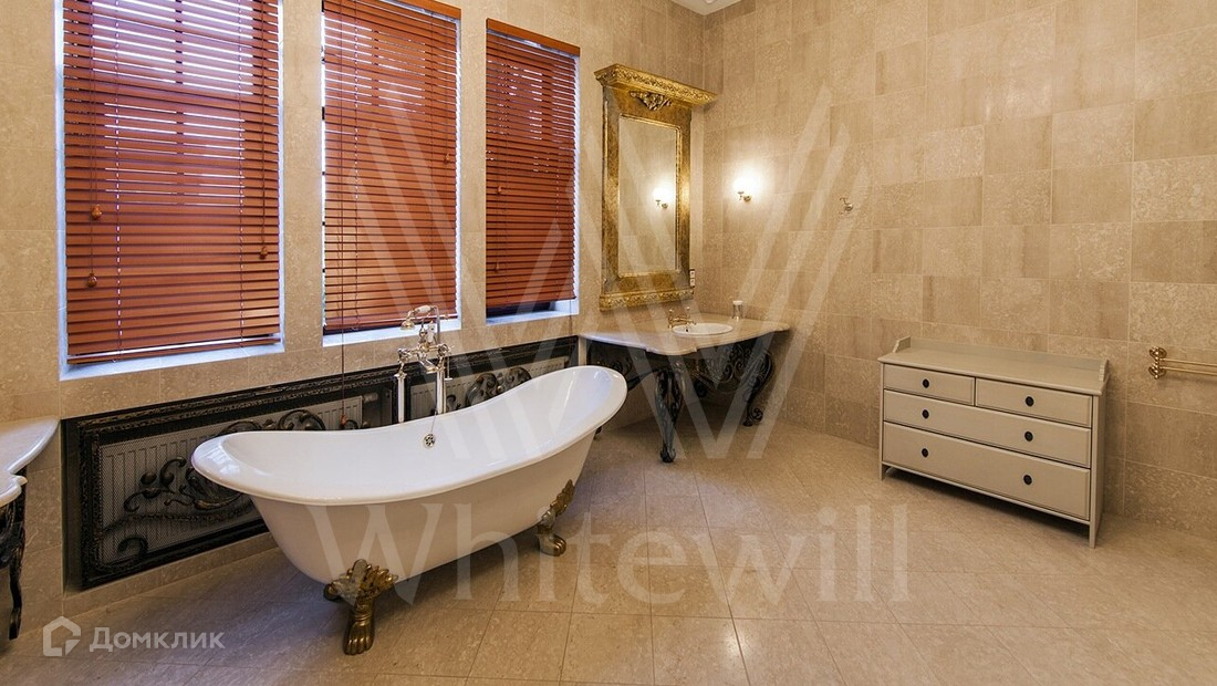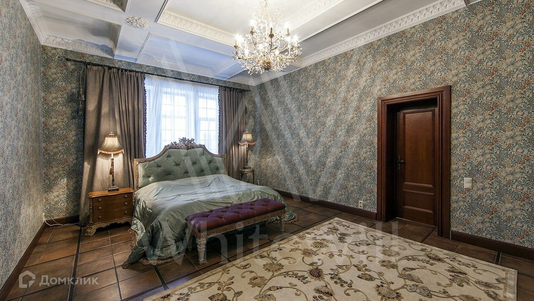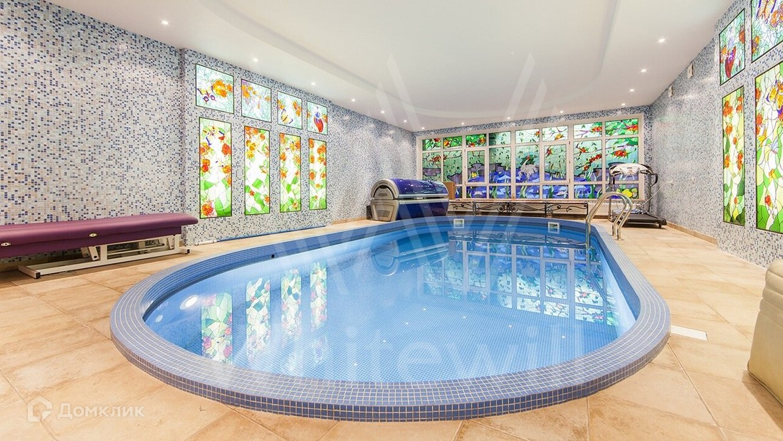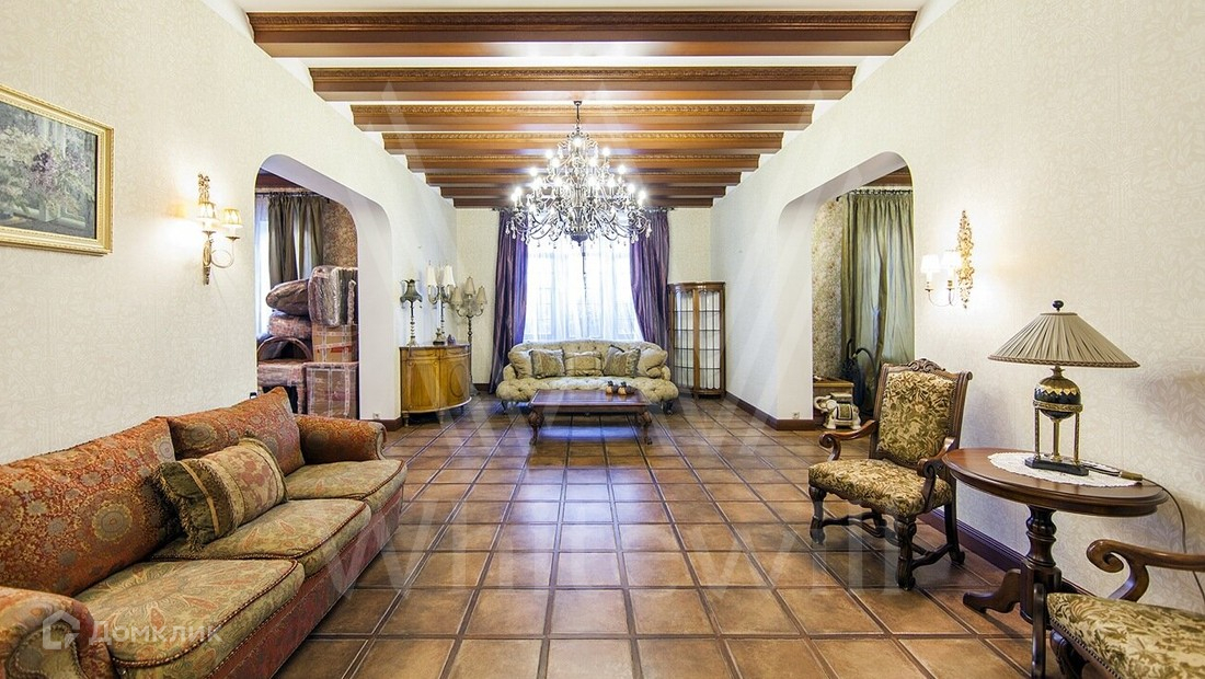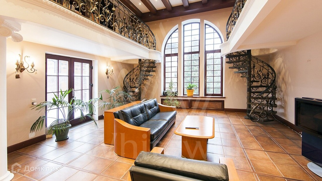 ID 6 968. НПИЗ Барвиха. Двухэтажный дом в английском стиле с башенкой стоит на лесном ухоженном участке 15 соток в окружении сосен и елей. Бежевый светлый фасад облицован штукатуркой, украшен рустовкой и лепниной. В доме на площади 1000 м² спланирован двухсветный каминный зал, кабинет, винная комната, бассейн с сауной. На цокольном этаже расположена гостевая спальня и рабочая кухня. На втором этаже — три спальни хозяев. Лифт поднимается с первого на второй этаж. Интерьер дома выполнен в английском стиле в сдержанных тонах, детали — из темного дерева, керамогранита и металла. В СПА-зоне на окнах витражи в стиле «ар-деко». Кухня и санузлы оборудованы премиальной техникой, комнаты частично меблированы.