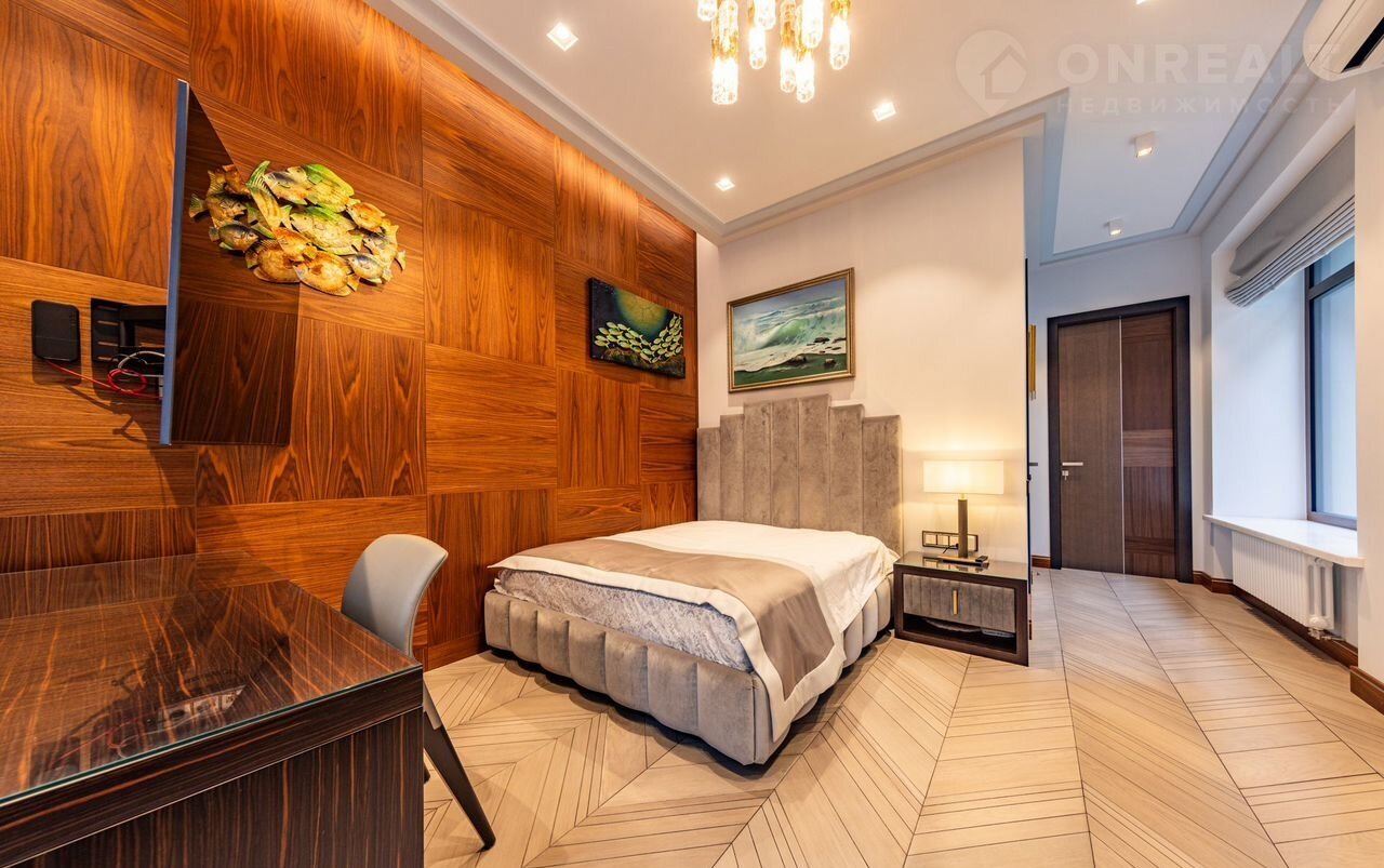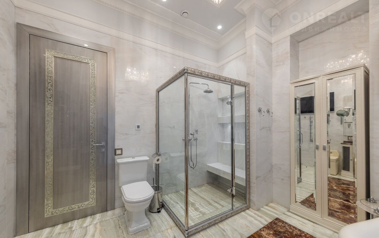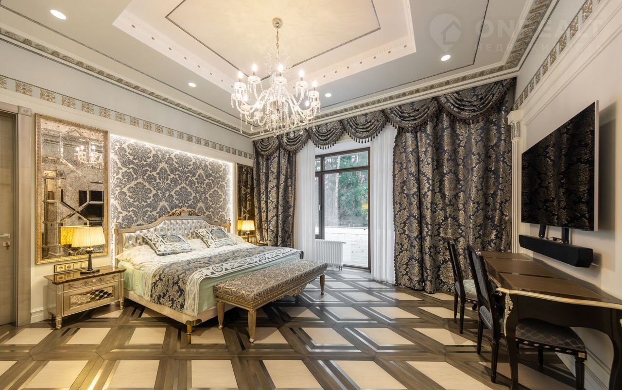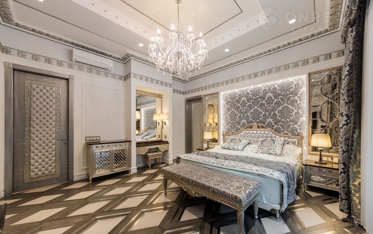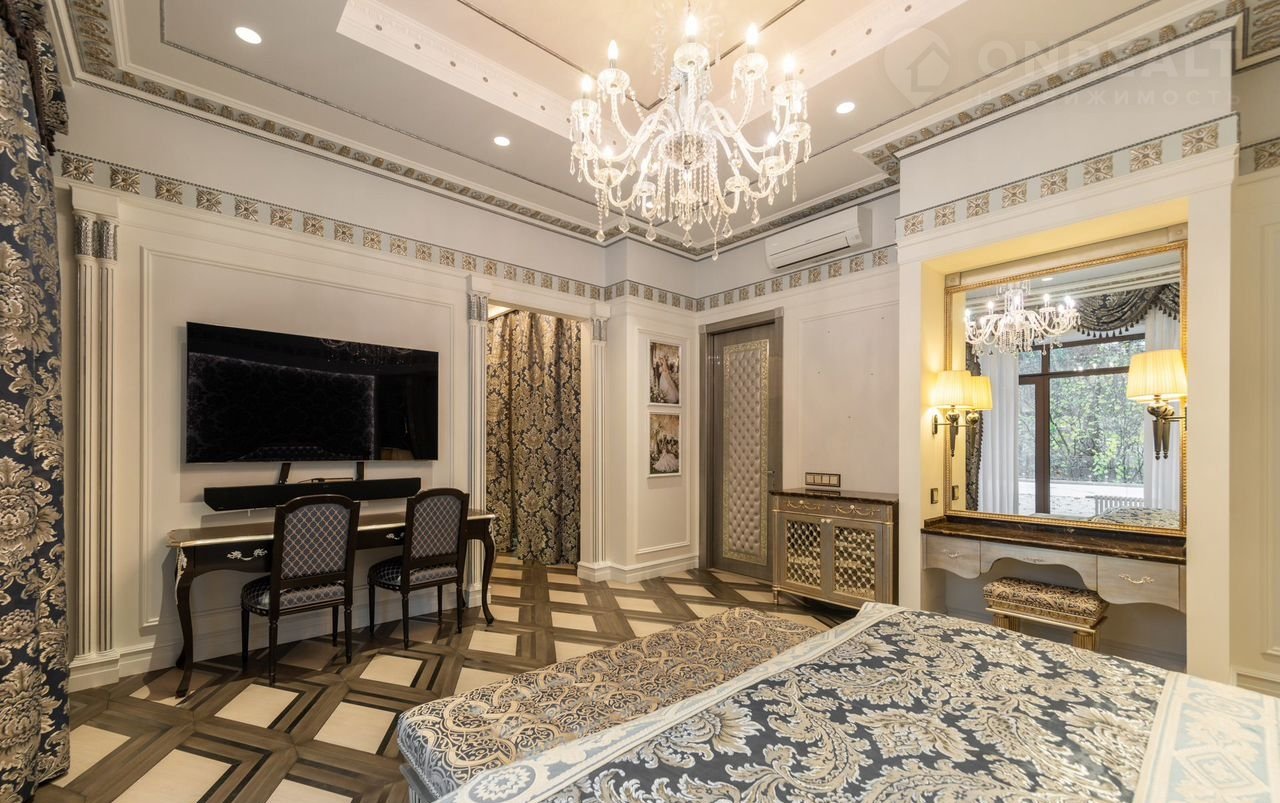 2-ой уровень: мастер-спальня с 2 гардеробными и ванной комнатой, 2 спальни со своими гардеробными и санузлами; гостевой блок с отдельным входом: 3 спальни со своими санузлами, гостиная, кухня.