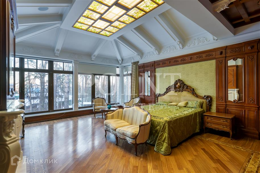 Лот: 96620. Предлагается в долгосрочную аренду трехуровневый загородный дом площадью 800 кв.м, расположенный на лесном участке 50 соток в окружении вековых сосен, в деревне "Барвиха" в непосредственной близости от столицы. В отделке дома использованы высококачественные премиальные материалы. Интерьерное оформление выполнено в изысканном классическом стиле, при этом использовалась высококлассная дорогая мебель и современная техника от ведущих мировых производителей. На первом уровне (цоколь) находится прачечная, котельная, бильярдная, кинотеатр, санузел, винный погреб, кладовая, бар, сейфовая комната. Второй уровень занимает гостиная с камином, столовая с выходом на террасу, кухня, кабинет, холл, санузел, гардеробная, блок охраны. Третий уровень включает в себя мастер спальню с выходом на террасу, камином, гардеробной и ванной комнатой, две спальни, санузел (гидромассажная ванна и душевая кабина), тренажерный зал, двусветная библиотека. На придомовой территории отдельно построена беседка, гостевой дом с сауной, есть небольшой пруд и фонтан, предусмотрена парковка на два машино-места.