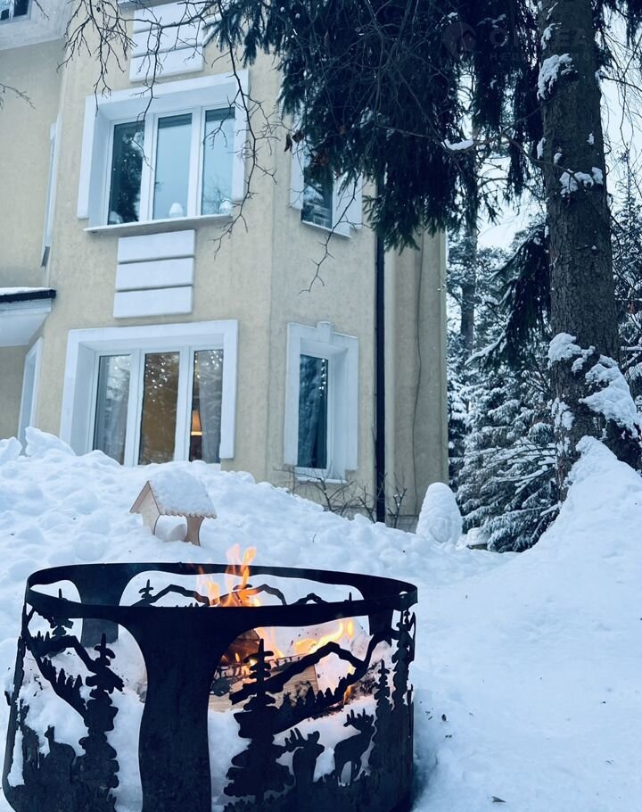 На территории сосны и ели, костровая чаша, мангал, стол и стулья, навес на 1а/м, кормушки для белок (на участке вы сможете увидеть белочек)