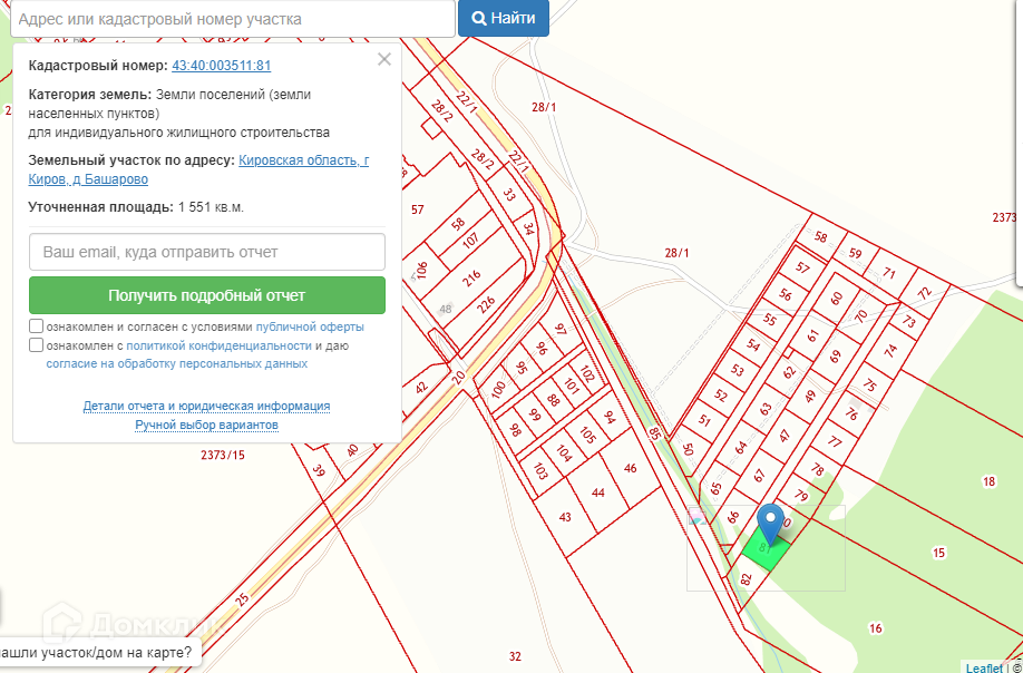Кадастровый нoмер — 43:40:003511:81 Кировская область, г Киров, д Башарово