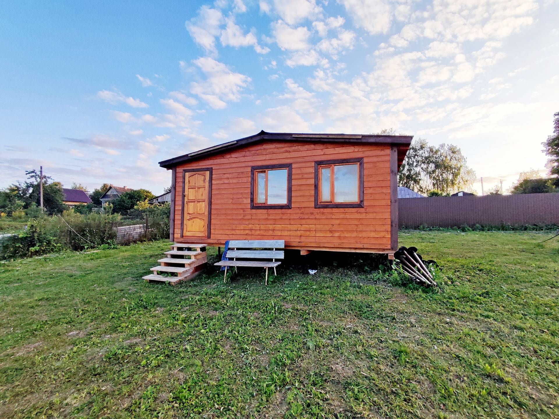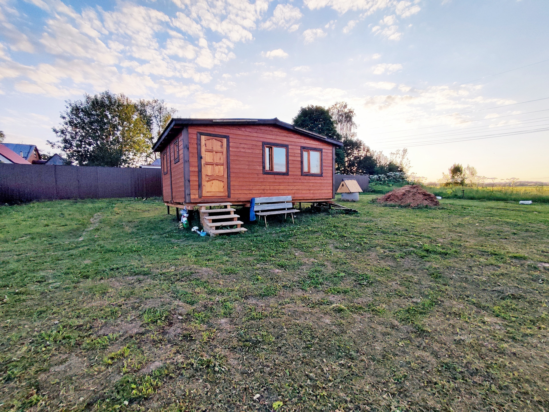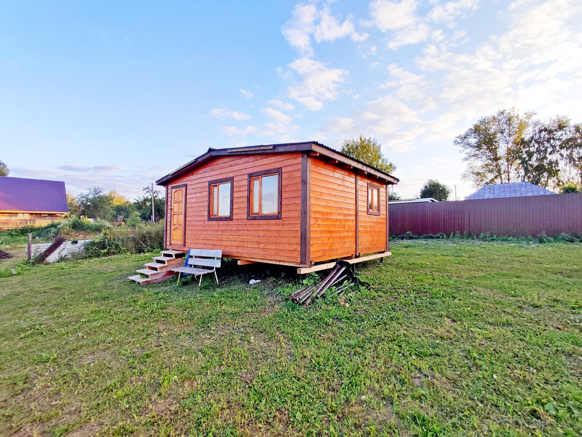 На участке расположен небольшой одноэтажный каркасный дом 5*6.