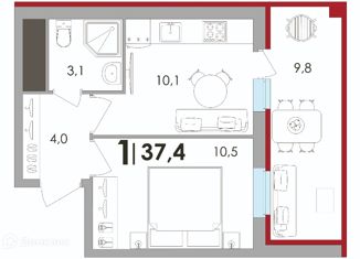 Продажа 1-комнатной квартиры, 34.4 м2, улица Сергея Есенина, 3