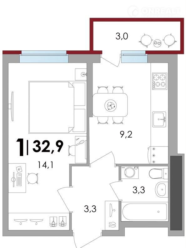 Общая площадь 32.6 м2