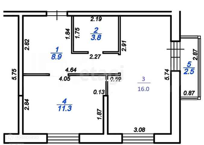 Общая площадь 43 м2