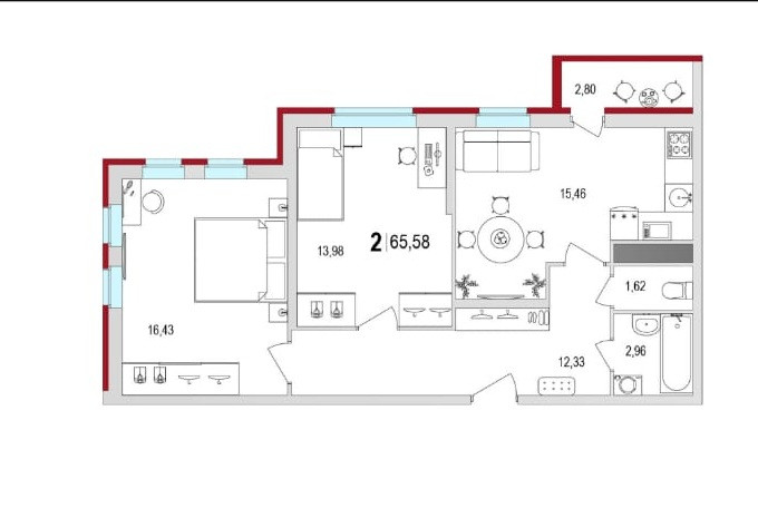 Общая площадь 65 м2