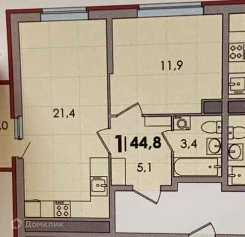 Площадь кухни 21.4 м2