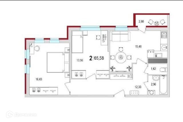 Общая площадь 65 м2