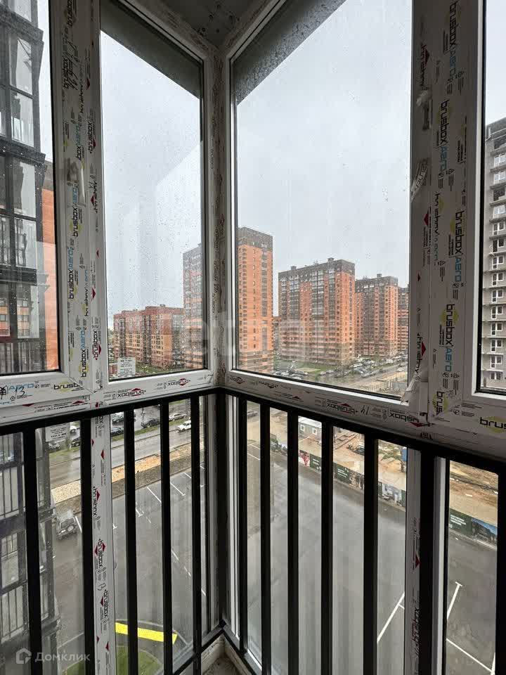 Из кухни большая лоджия с панорамным остеклением с видом на город.