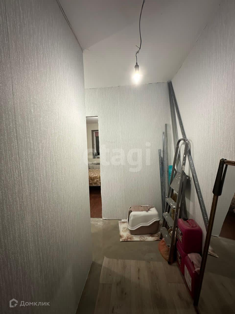 В квартире комната 11,4 кв.м и просторная кухня-гостиная 18,4 кв.м. Санузел совмещен. Квартира частично требует ремонта.