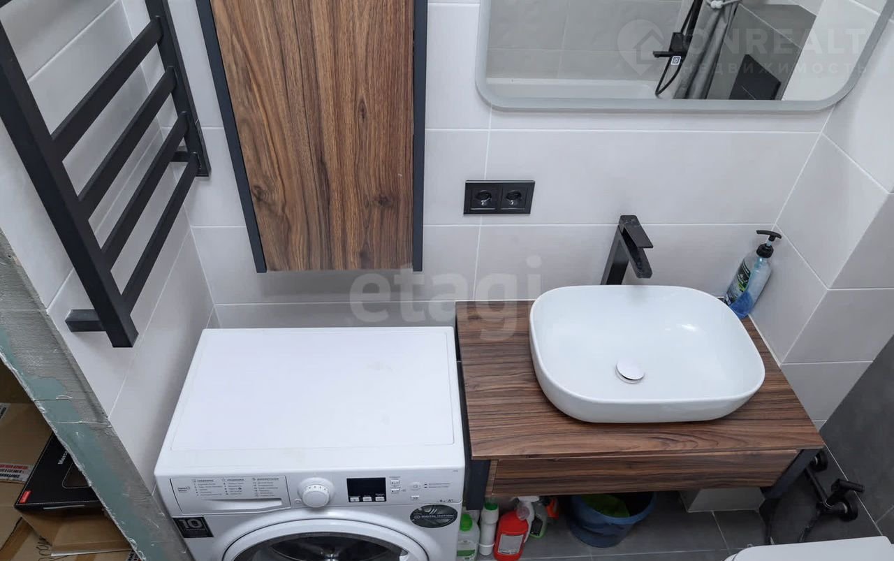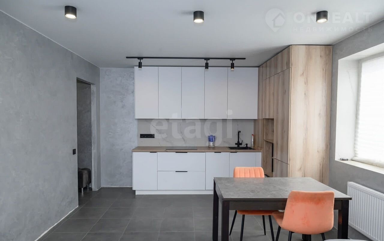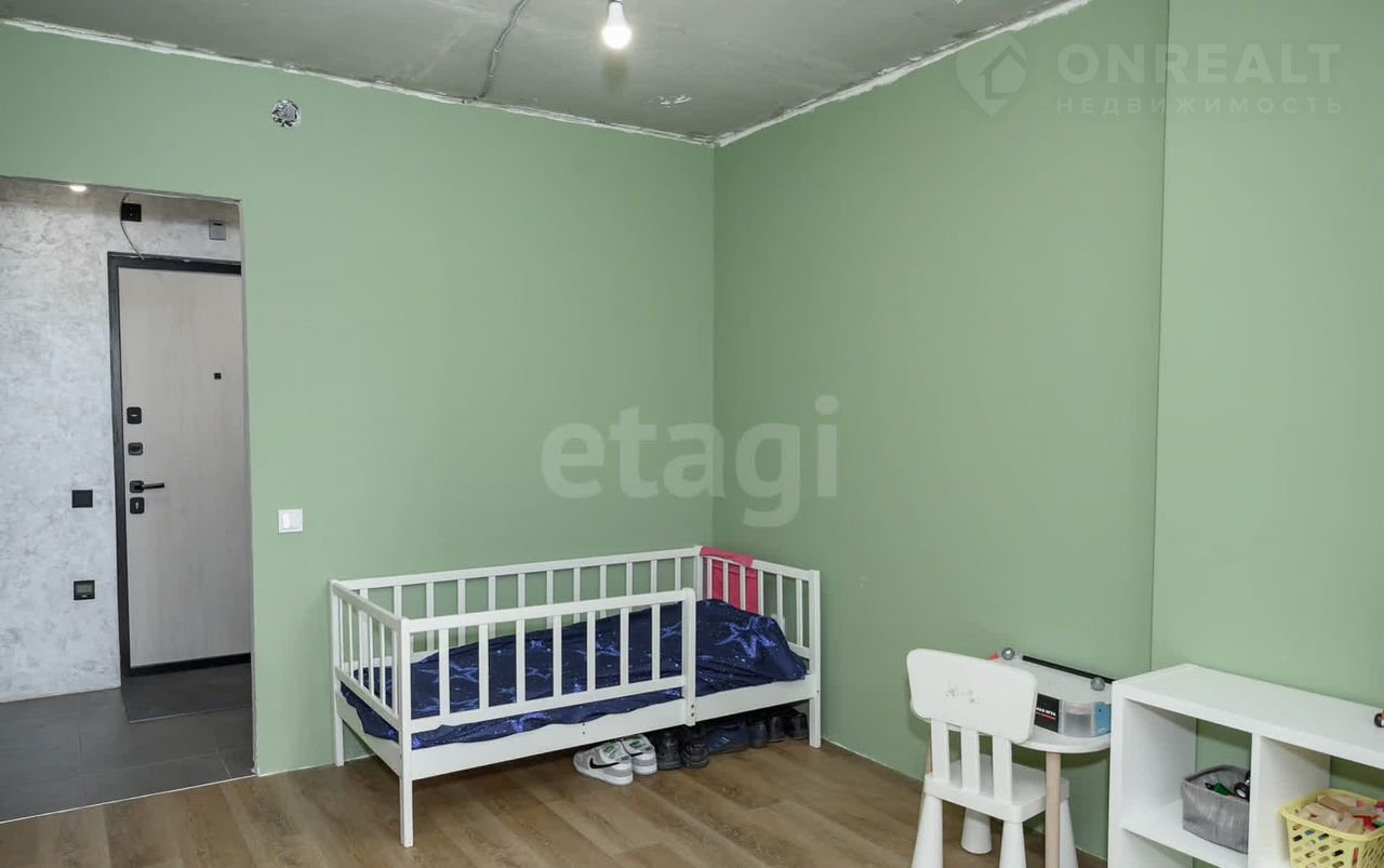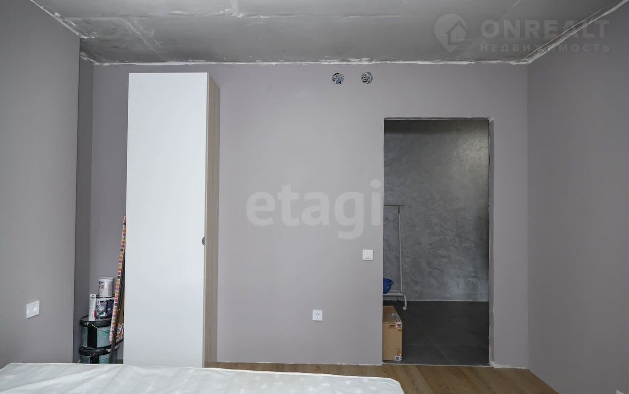 В квapтирe cделaнa чистовaя oтделка (cтяжка полa, развoдкa электрики, установлены розетки и выключатели, сделана штукатурка стен под покраску, уложена плитка), установлен кухонный гарнитур.
