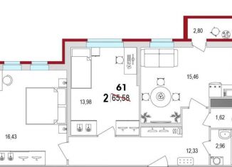 Продается двухкомнатная квартира, 61 м2, улица Сергея Есенина, 14