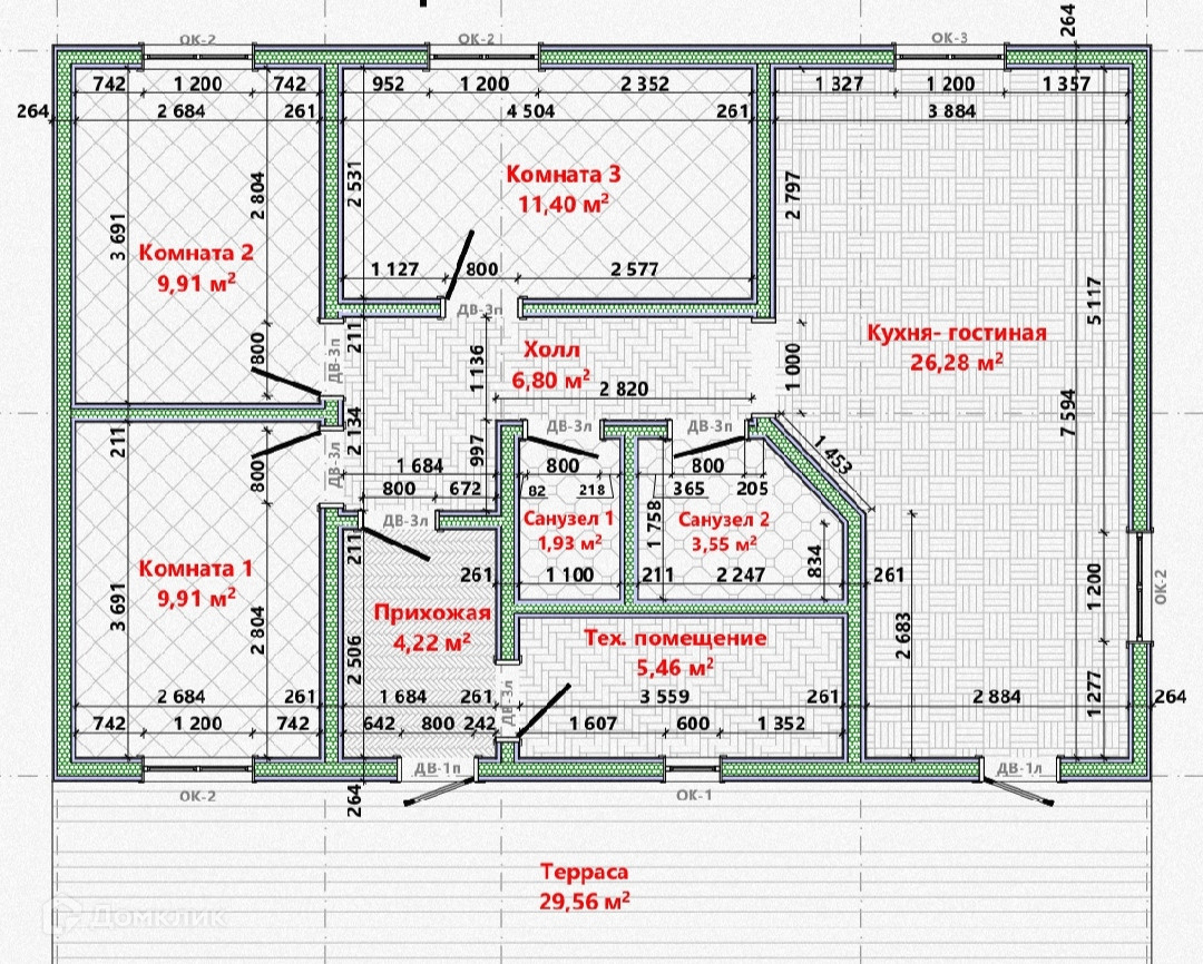 -Площадь террасы: 29,56 м2
