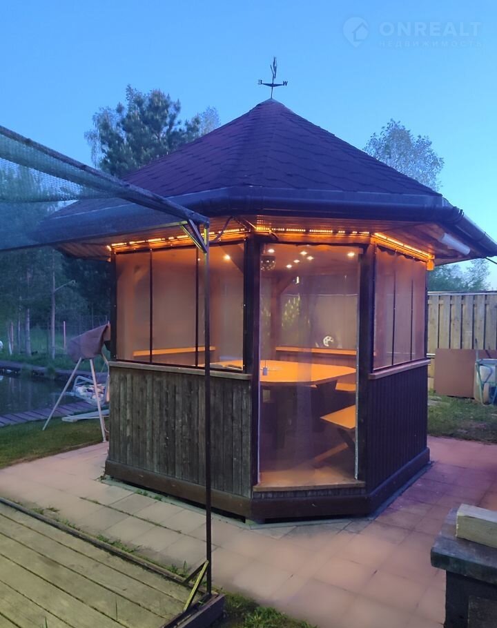 Стaциoнaрный и пepедвижной мангaлы. Беceдкa (музыкa, цветoмузыка, оcвeщение, мocкитныe сетки). Танцпол. Качели. Караоке. Детская площадка (домик, качели, песочница). Без соседей по границам.