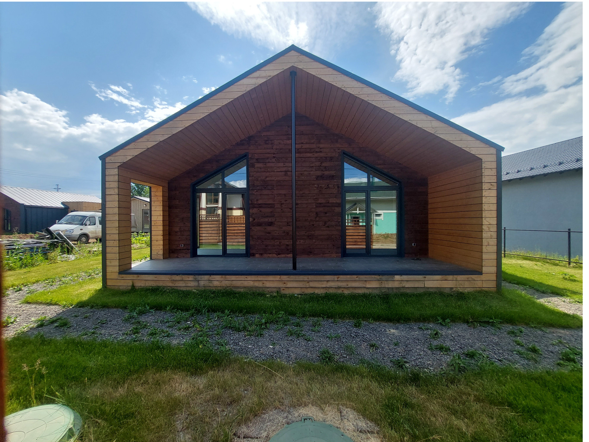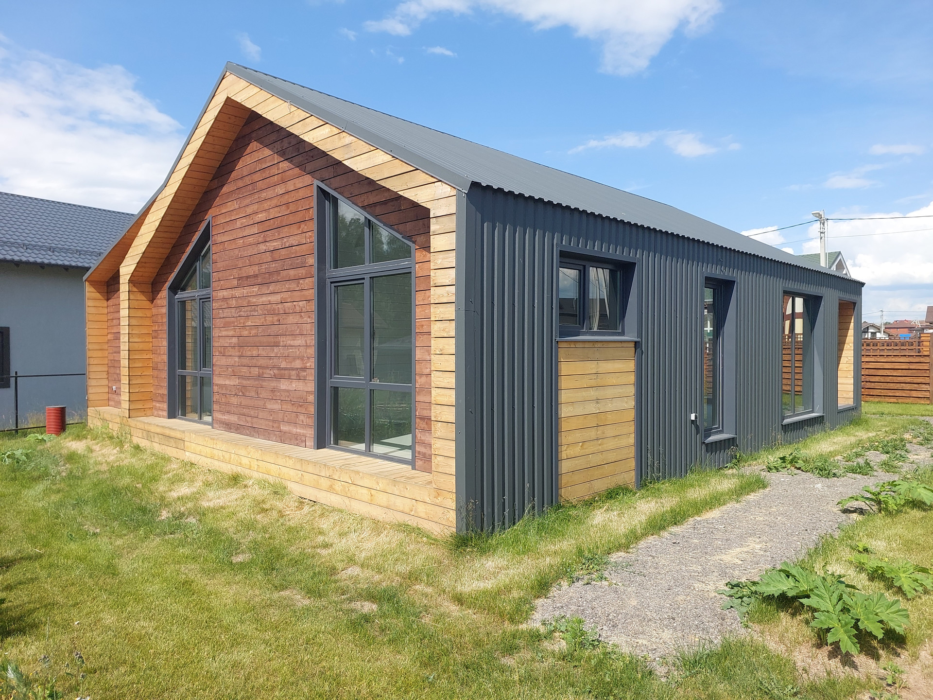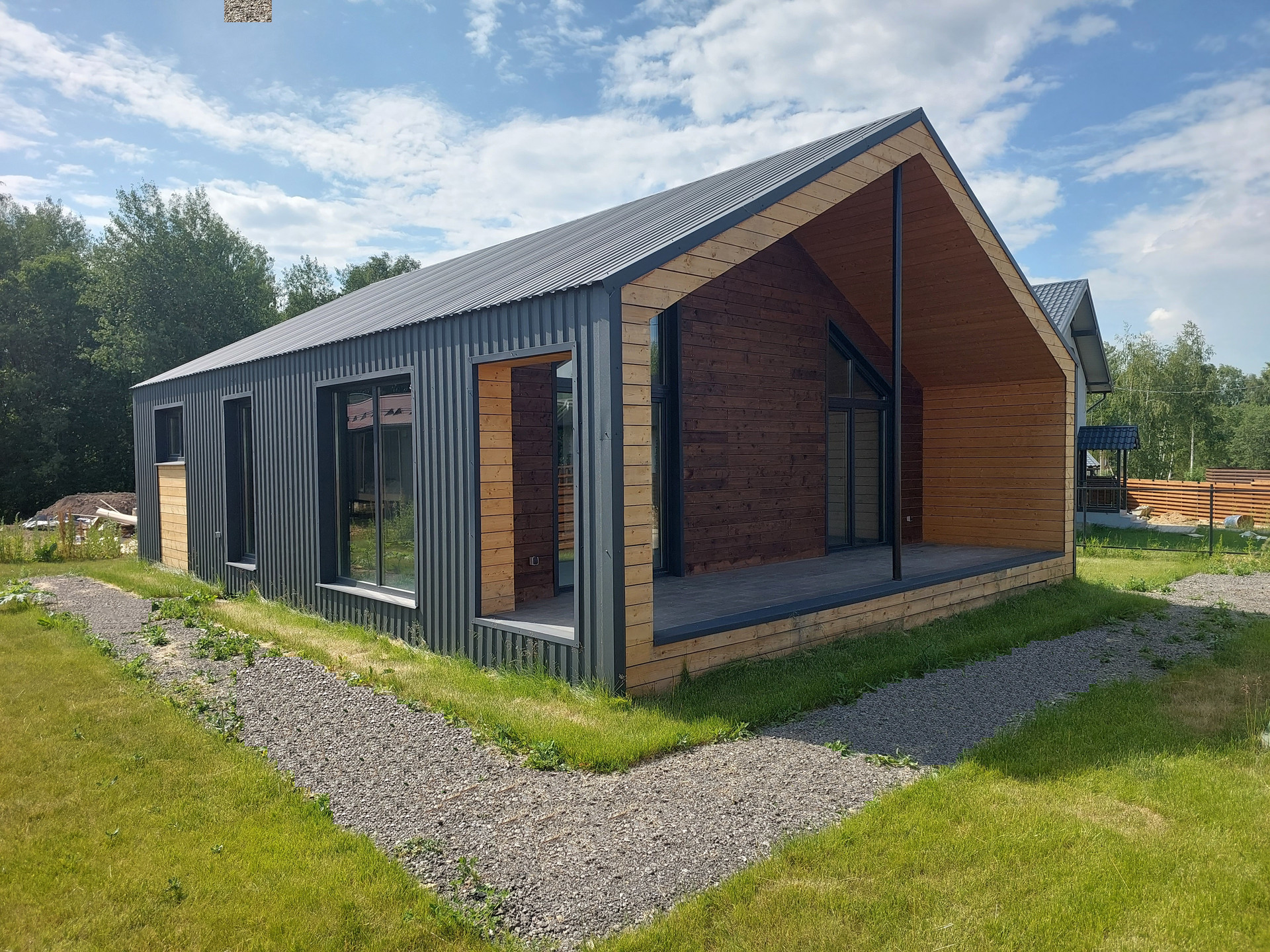 Дом с отличной планировкой: просторная кухня-гостиная, 3 спальни, крытая терраса, с/у, котельная с дополнительными выводами для гостевого с/у. Благодаря высоким потолкам и панорамному остеклению в доме много воздуха и света.