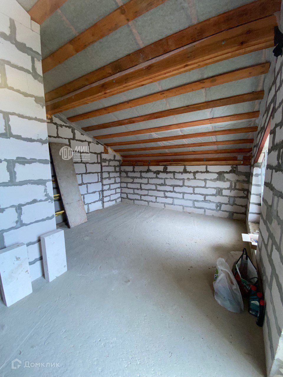 Фундамент - монолитная плита. Материал стен - пеноблок, штукатурка. Перекрытия монолитные, лестница в доме бетонная. Крыша - гибкая черепица.