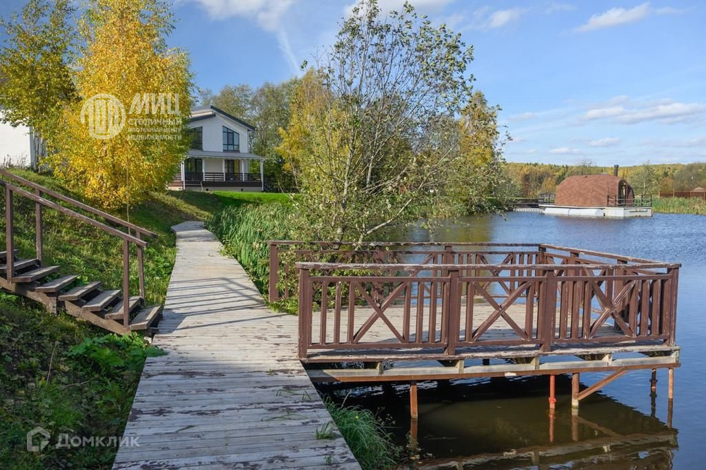 Дом имеет свой выход к пруду. Пруд чистый, зарыблин. Сделаны деревянные пирсы. Есть небольшое плавучее кафе.