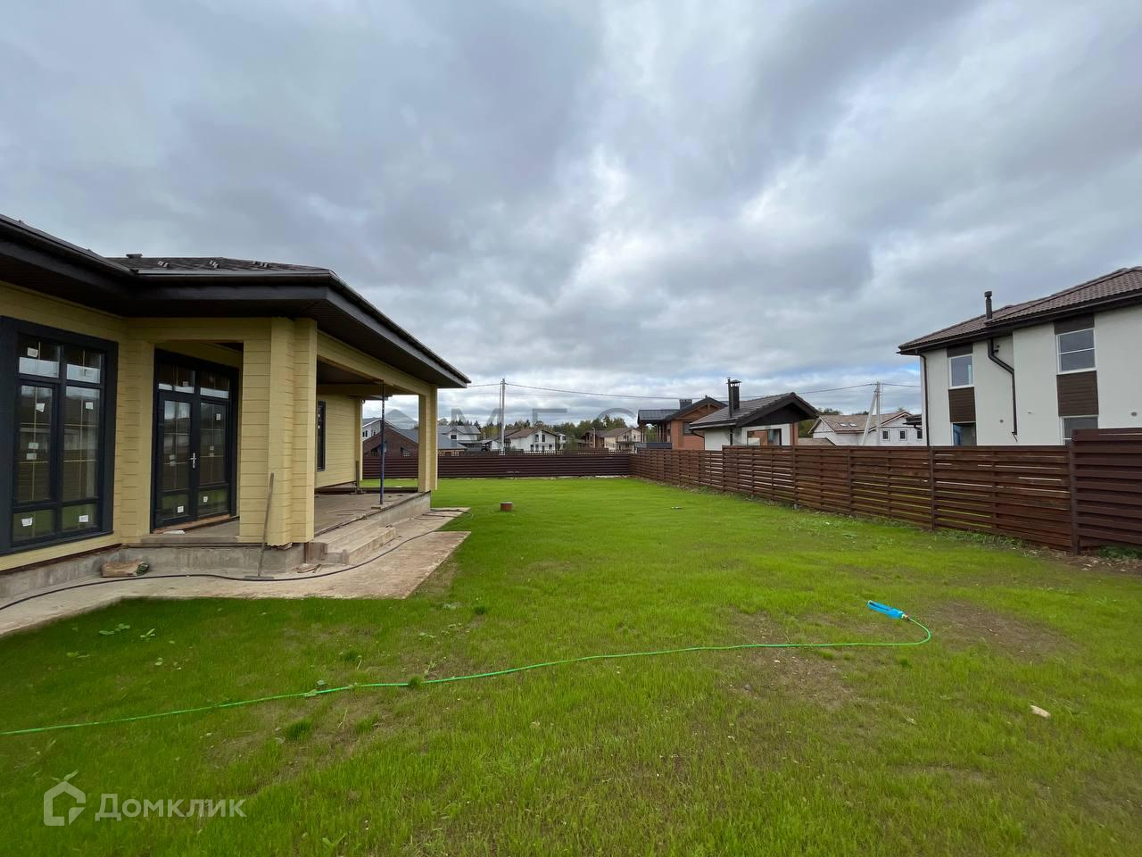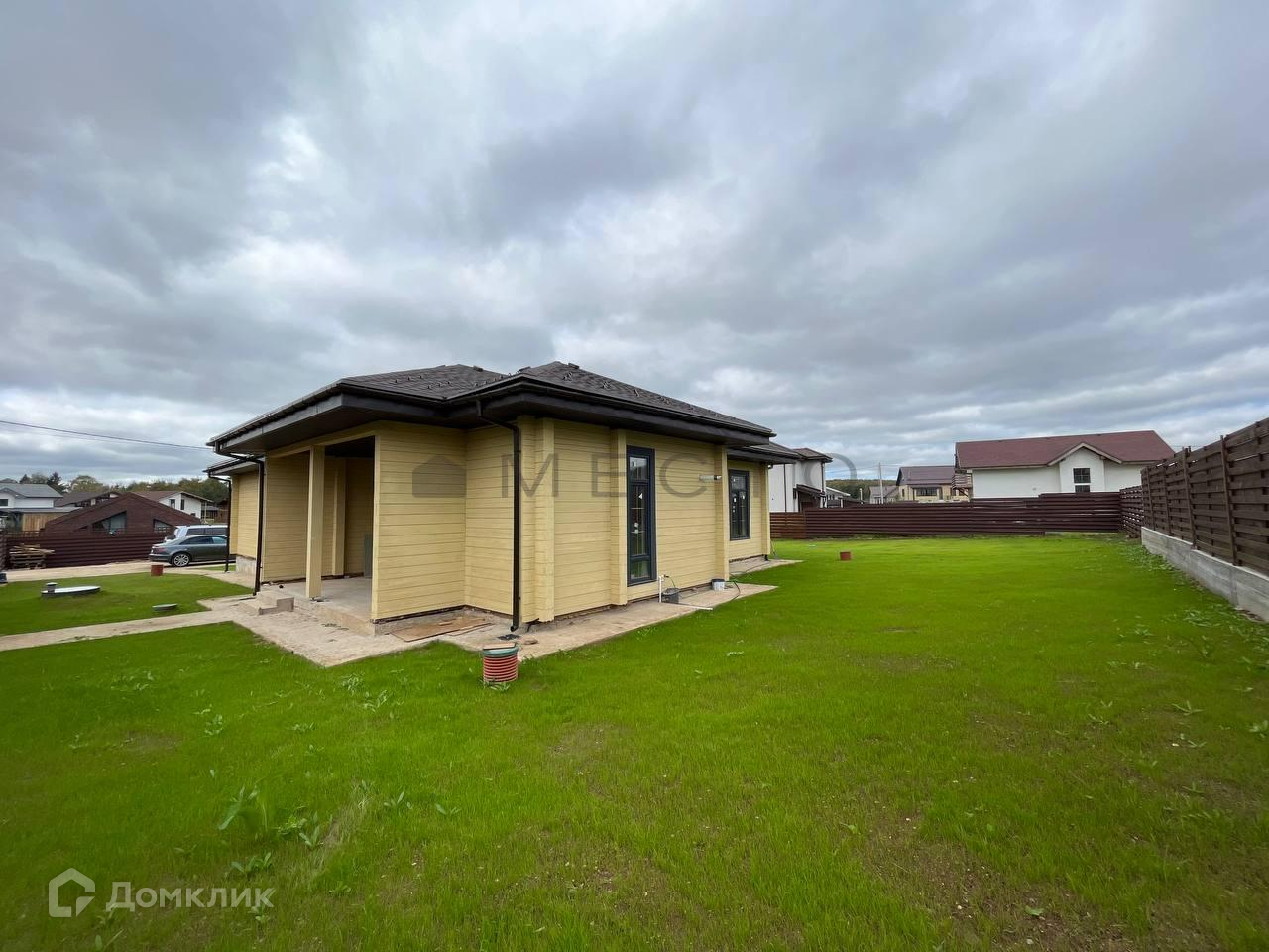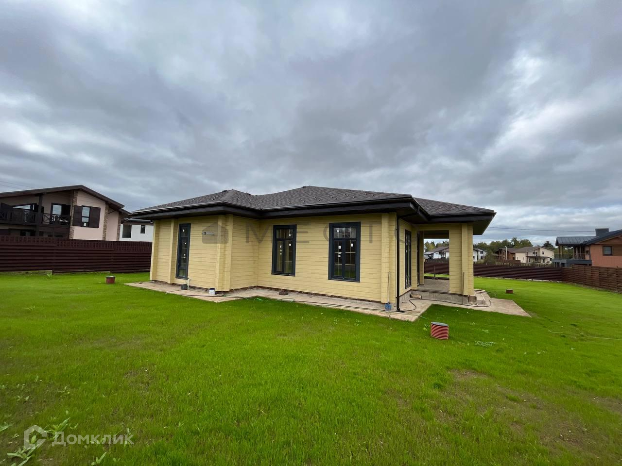 Продается современный, светлый дом, готовый для жизни. Дом 170 квадратных метров расположен на участке 13 соток. Фундамент дома - монолитная плита с утеплением, стены - клееный брус.  Участок огорожен забором с электрическими воротами. По границе участка проходит газ, есть септик, проведено электричество (15 кВт). Общая скважина на весь поселок.