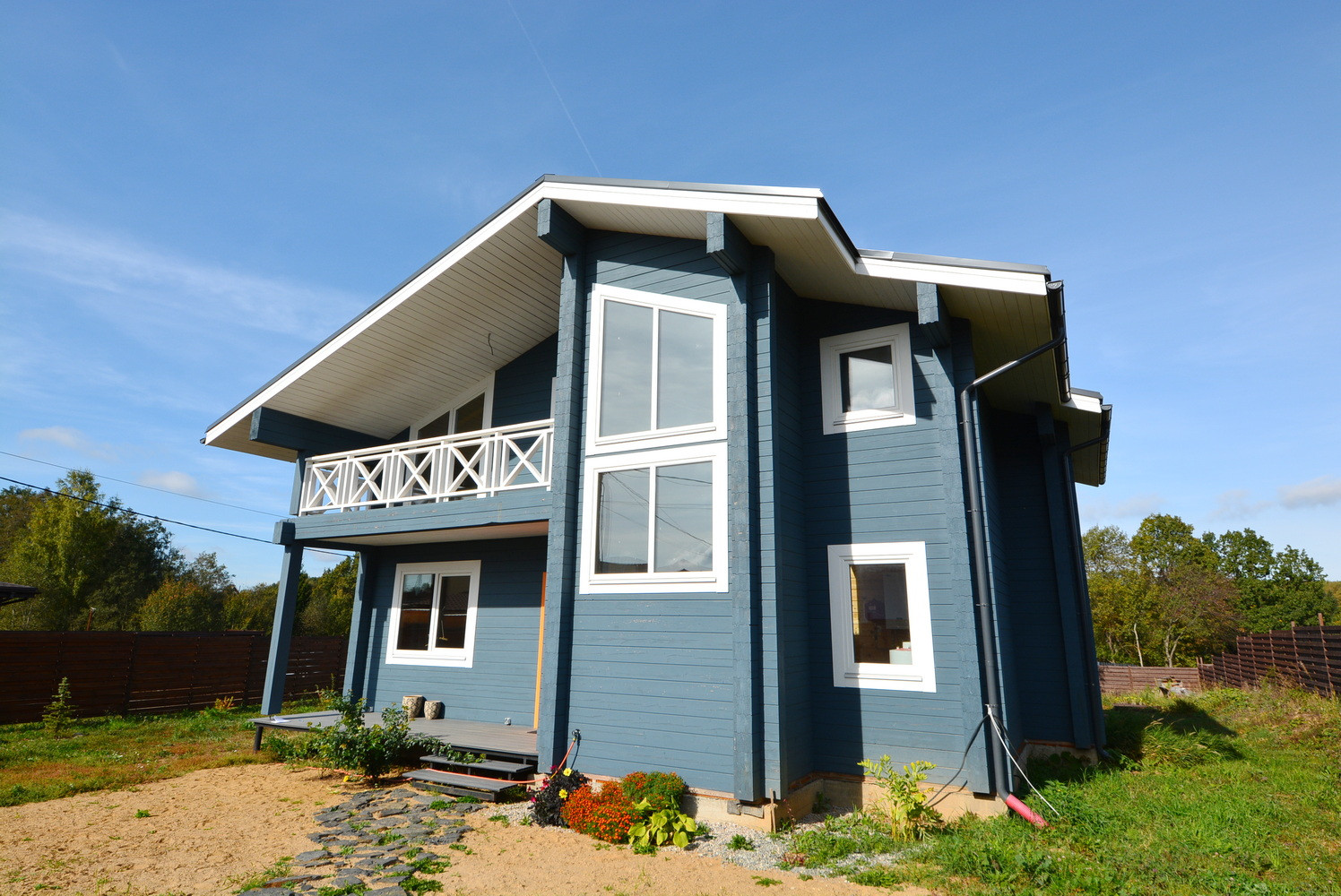 178.8 м. Материал стен - клееный брус 185x200. Фундамент - литая плита. Мягкая кровля Katepal.