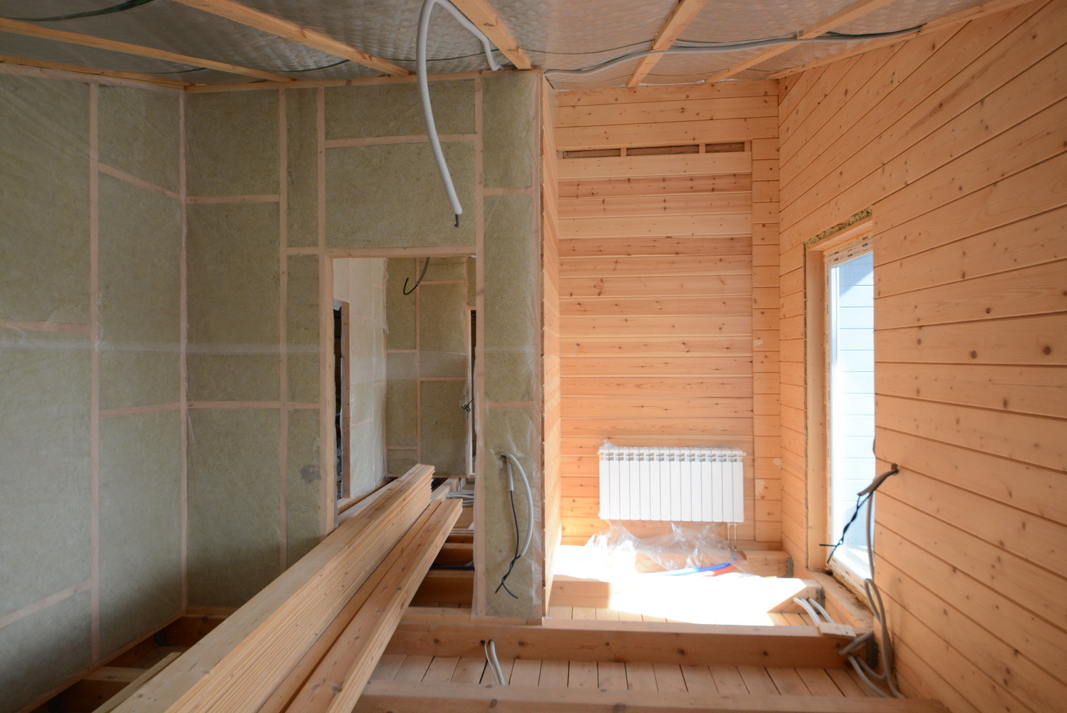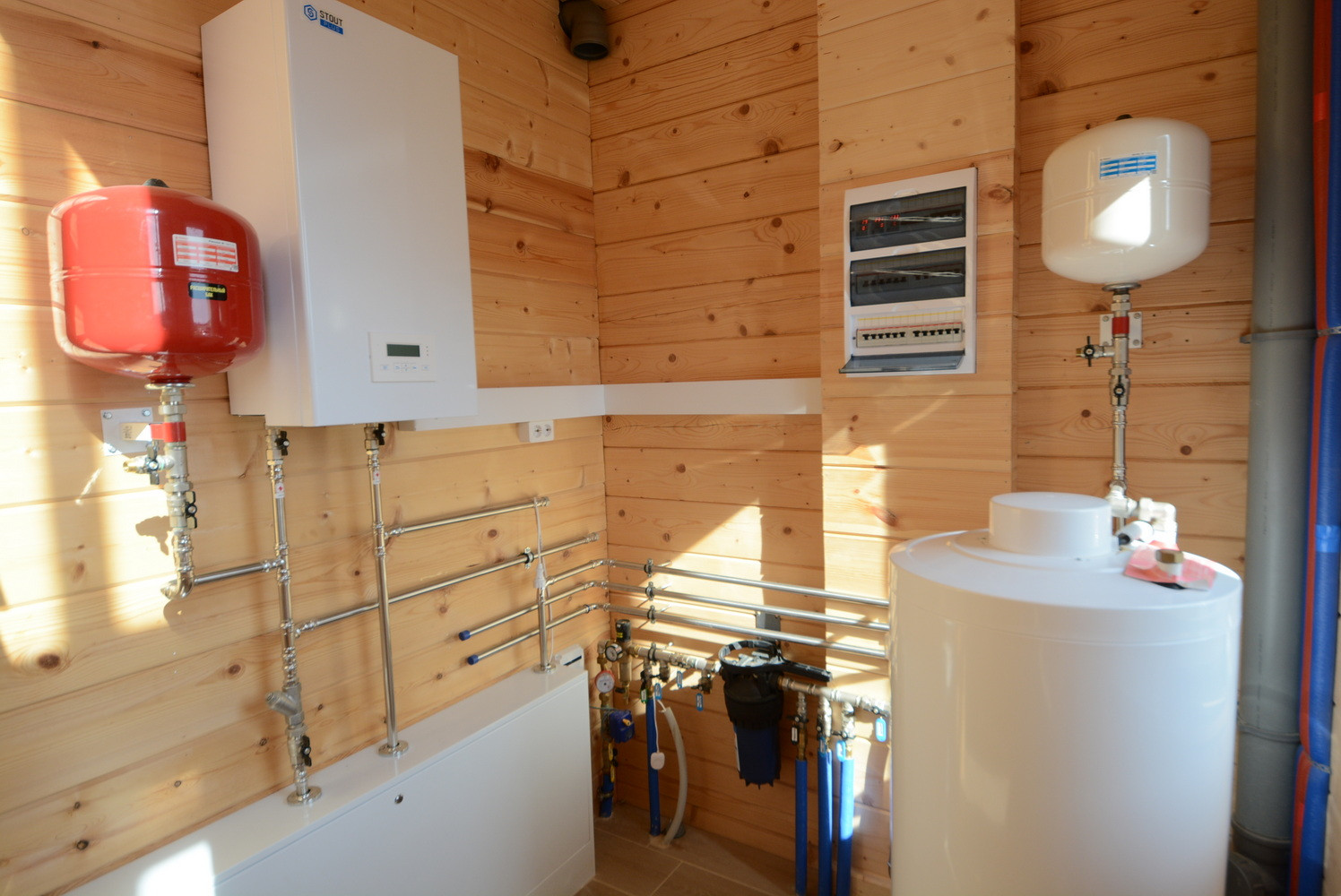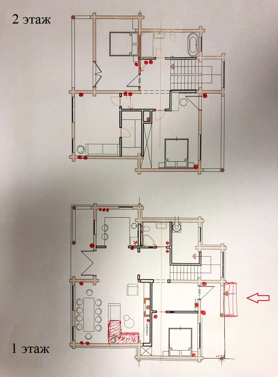 На 1 этаже теплые полы, ремонт полностью закончен (кроме мелких деталей). 2 этаж без ремонта, но также все коммуникации подведены.
