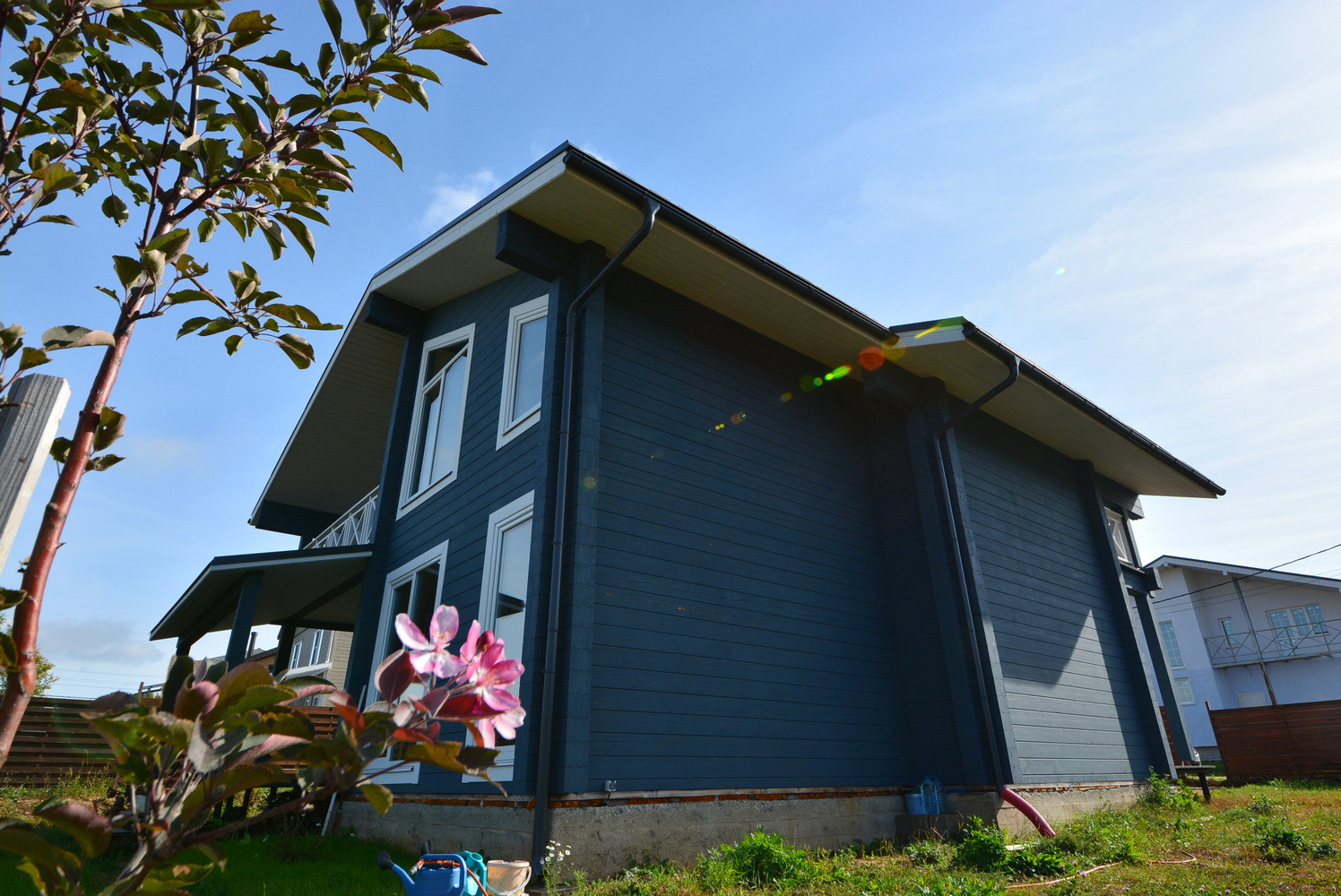 Проведен дренаж вокруг дома.