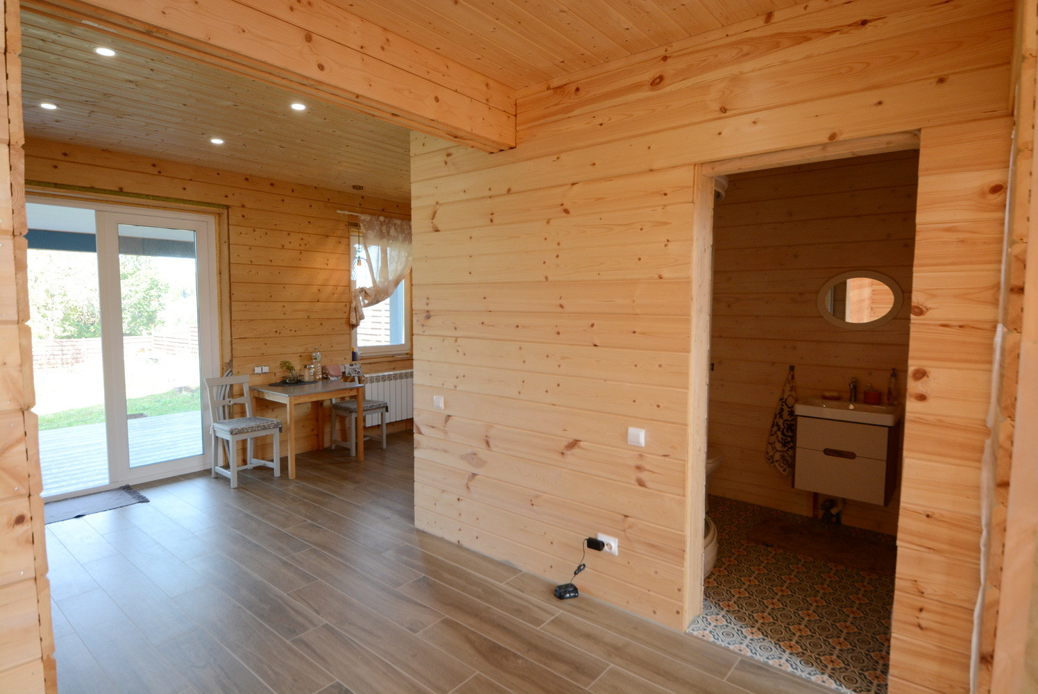 Большие окна в пол, много света и пространства. Двухкамерные стеклопакеты Rehau GRAZIO. Испанская плитка в ванной.