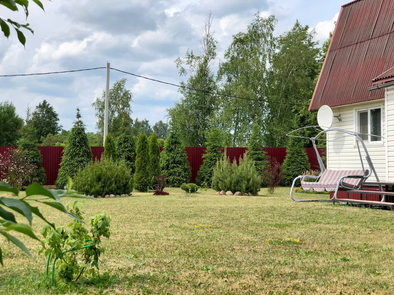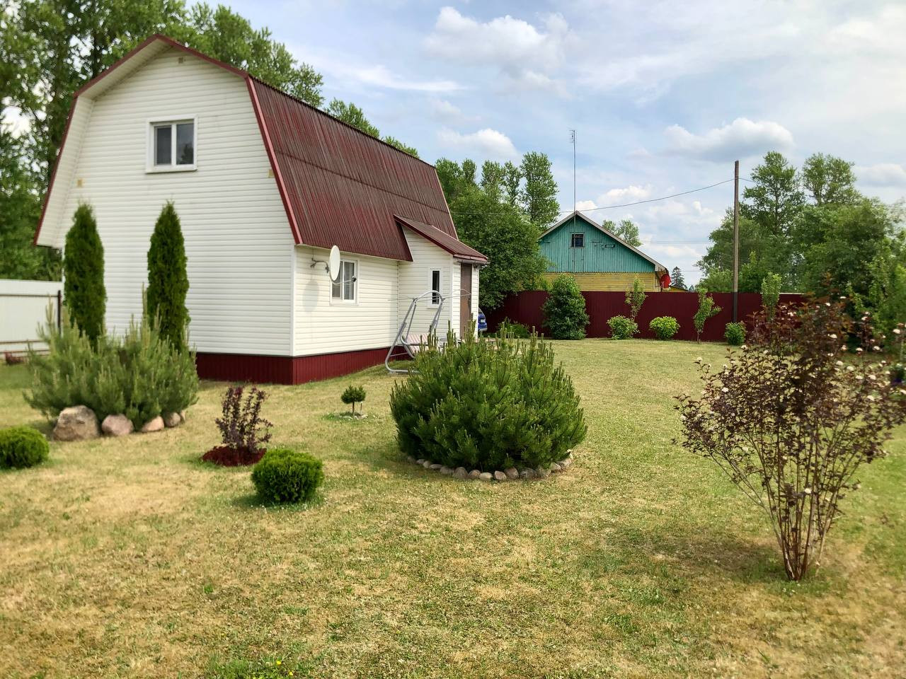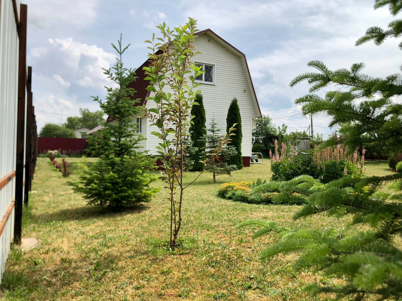 Участок ровный, сухой, межевание сделано. ЛПХ. Посажен газон, плодовые и декоративные хвойные деревья. Помимо дома на участке есть бытовка и беседка.