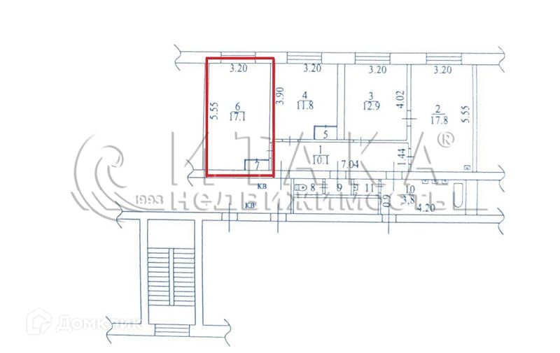 Жилая площадь 17.1 м2