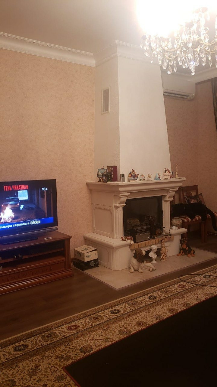 Первый этаж: Входной тамбур для хранения обуви и верхней одежды отгорожен от основных помещений распашными дверями со стеклопакетами. Далее большой холл с Г-образным платяным шкафом .Гостиная с действующим камином .Кухня производства Словения. Бытовая техника в комплекте: Двухкамерный холодильник LIBHER/Через арку -столовая с подвесной ТВ панелью .Стол раздвижной на 10 персон .Далее теплая веранда с выходом в сад, отделена от столовой бронированной дверью .Над верандой чердачное помещение для хранения. На первом этаже также находится двухфазный санузел. В первой зоне -большая раковина, стиральная машина с фронтальной загрузкой ,колонка для хранения банных принадлежностей. Во второй зоне -душевая кабина, полотенцесушитель ,унитаз ,отгороженный от основной зоны капитальной перегородкой .Лестница на второй этаж из массива ореха на бетонном основании ,имеет автоматическую подсветку в темное время суток.