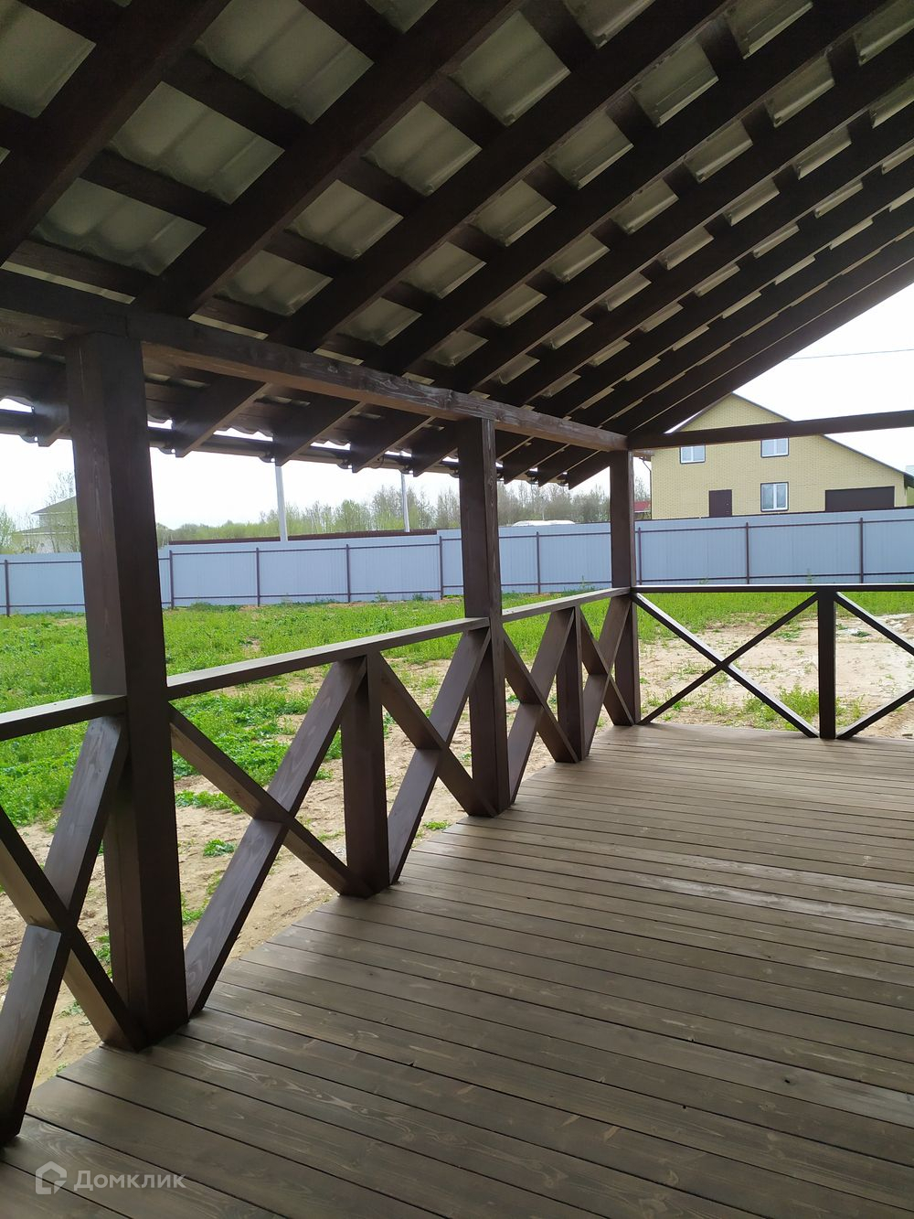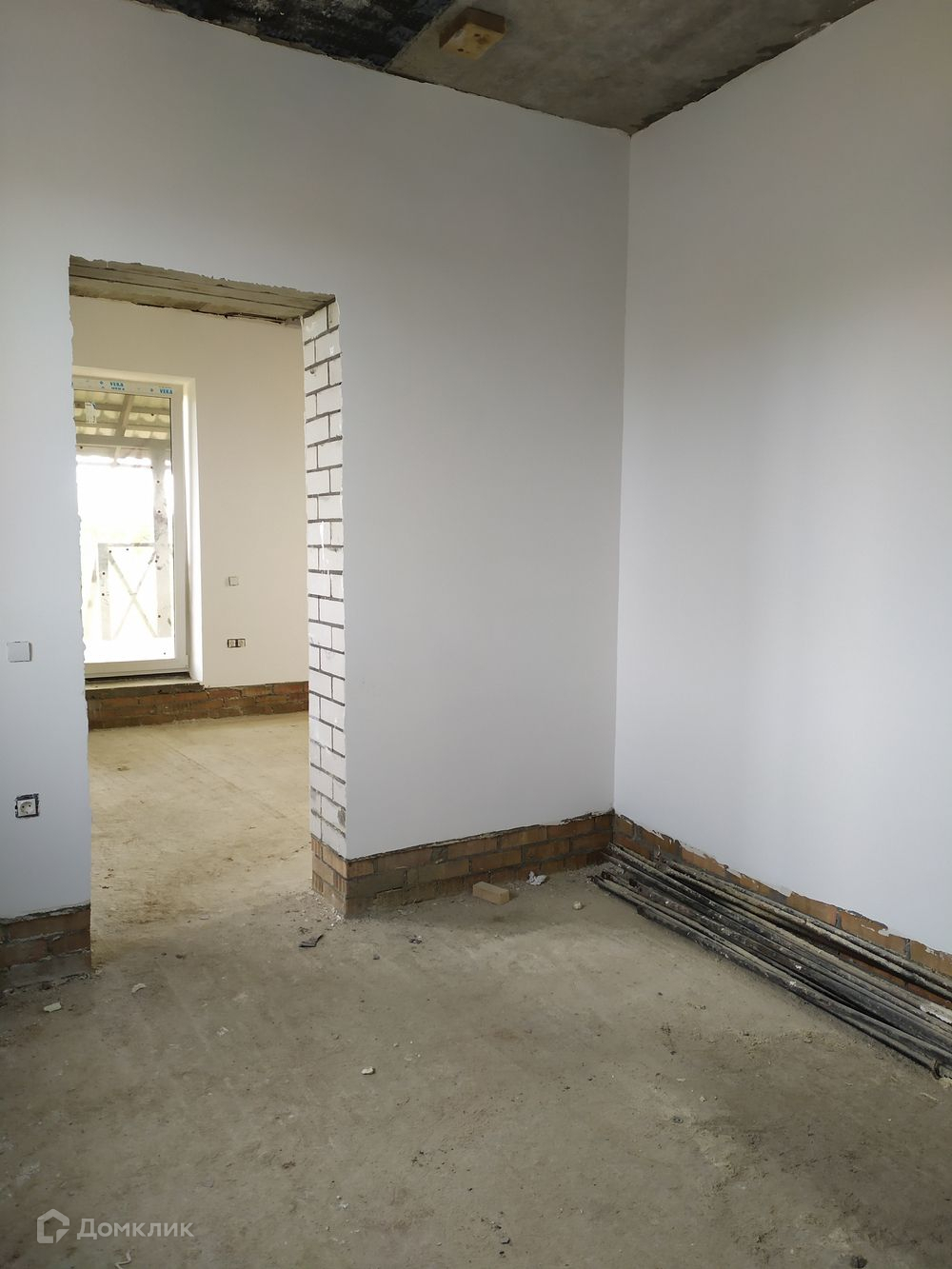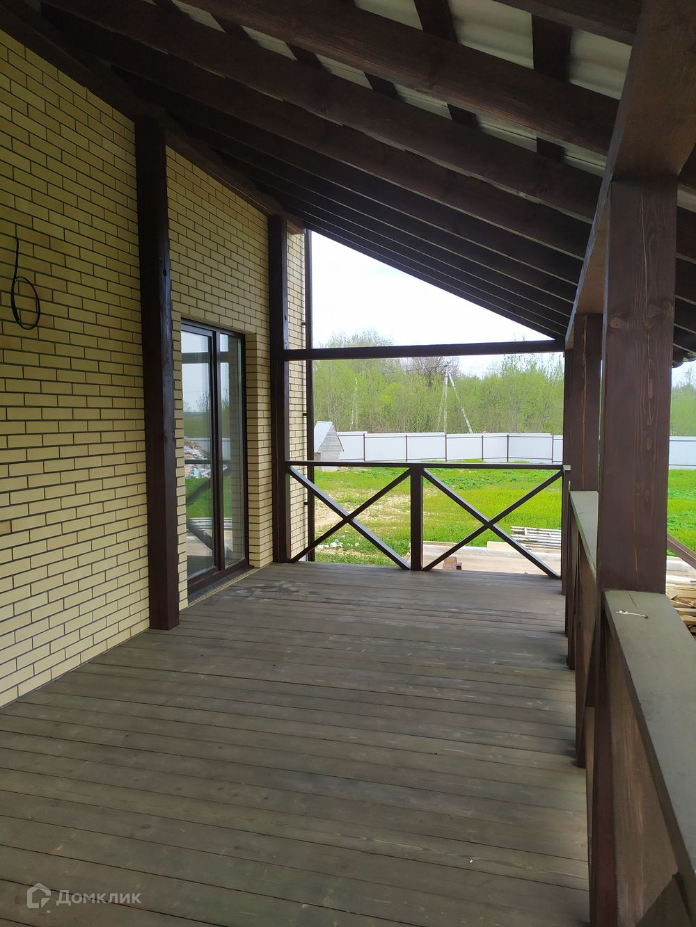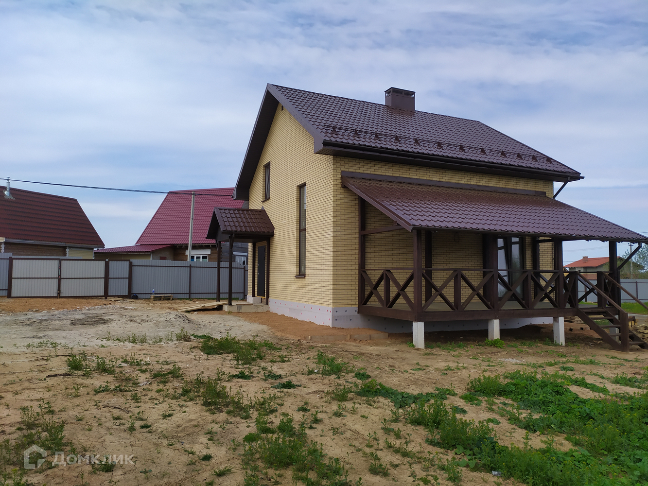 Фундамент - ж/б сваи, ростверк, стены пенобетонный блок 375 мм, облицованный керамическим кирпичом, крыша - металлочерепица, перекрытия ж/б, крыльцо, патио с выходом из кухни-гостиной, внутри оштукатурен, стены подготовлены под чистовую отделку.
