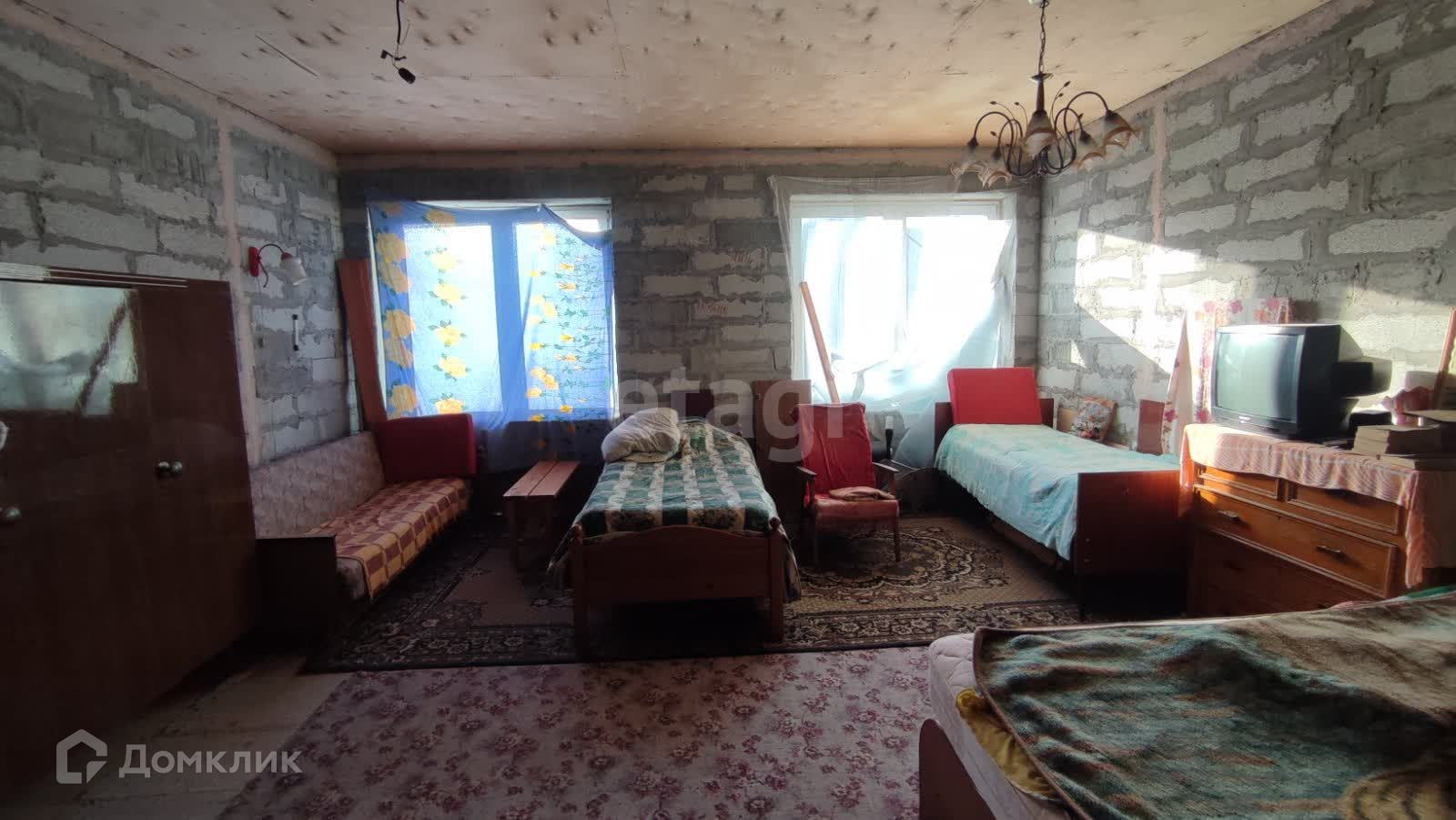 При входе в дом находится большая веранда. В доме просторная комната, кухня, прихожая. Окна пластиковые, выходят на две стороны дома.