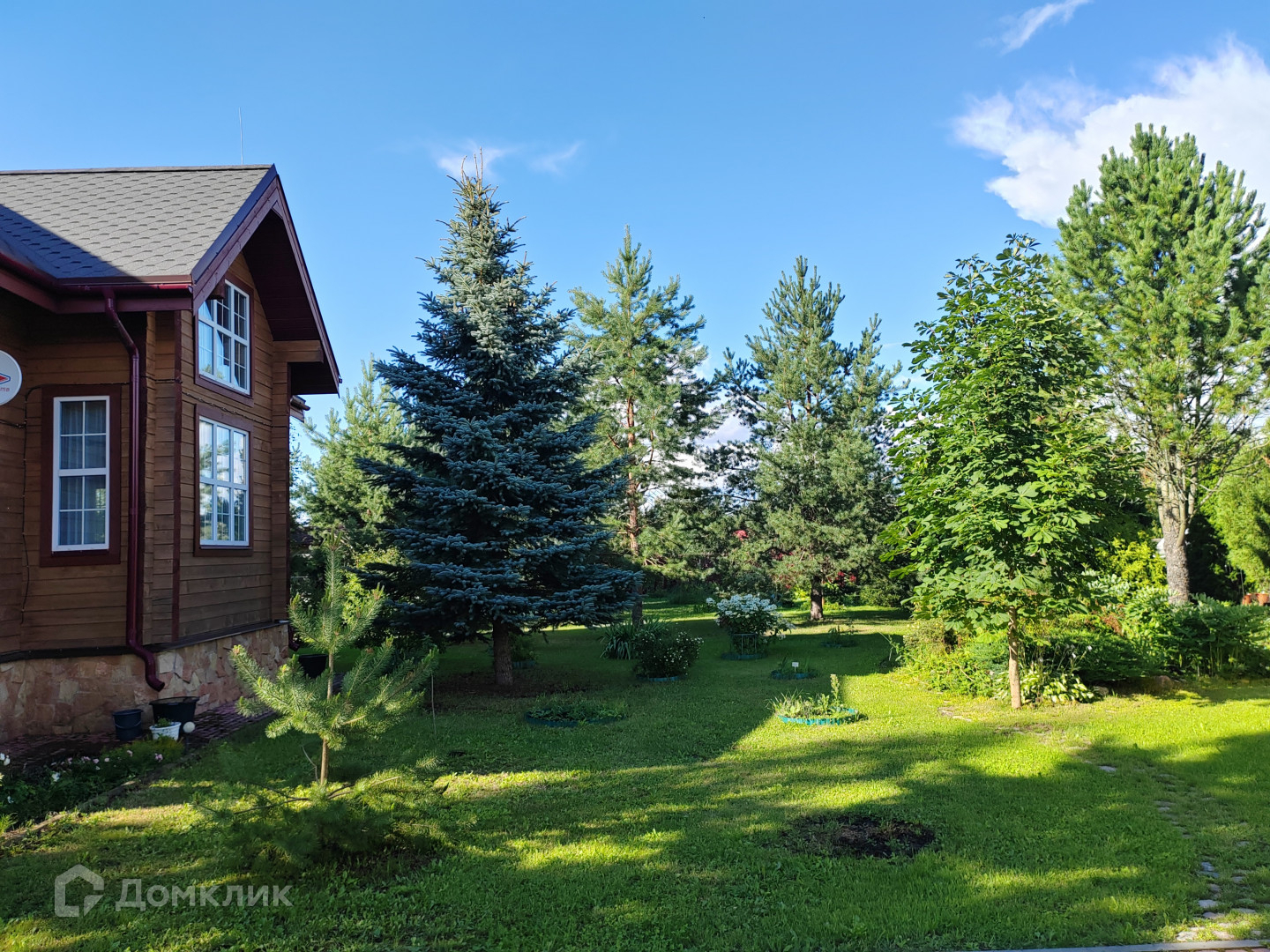 Дизайн участка разрабатывали до мельчайших подробностей, все деревья привозили с питомника. Есть небольшой пруд.