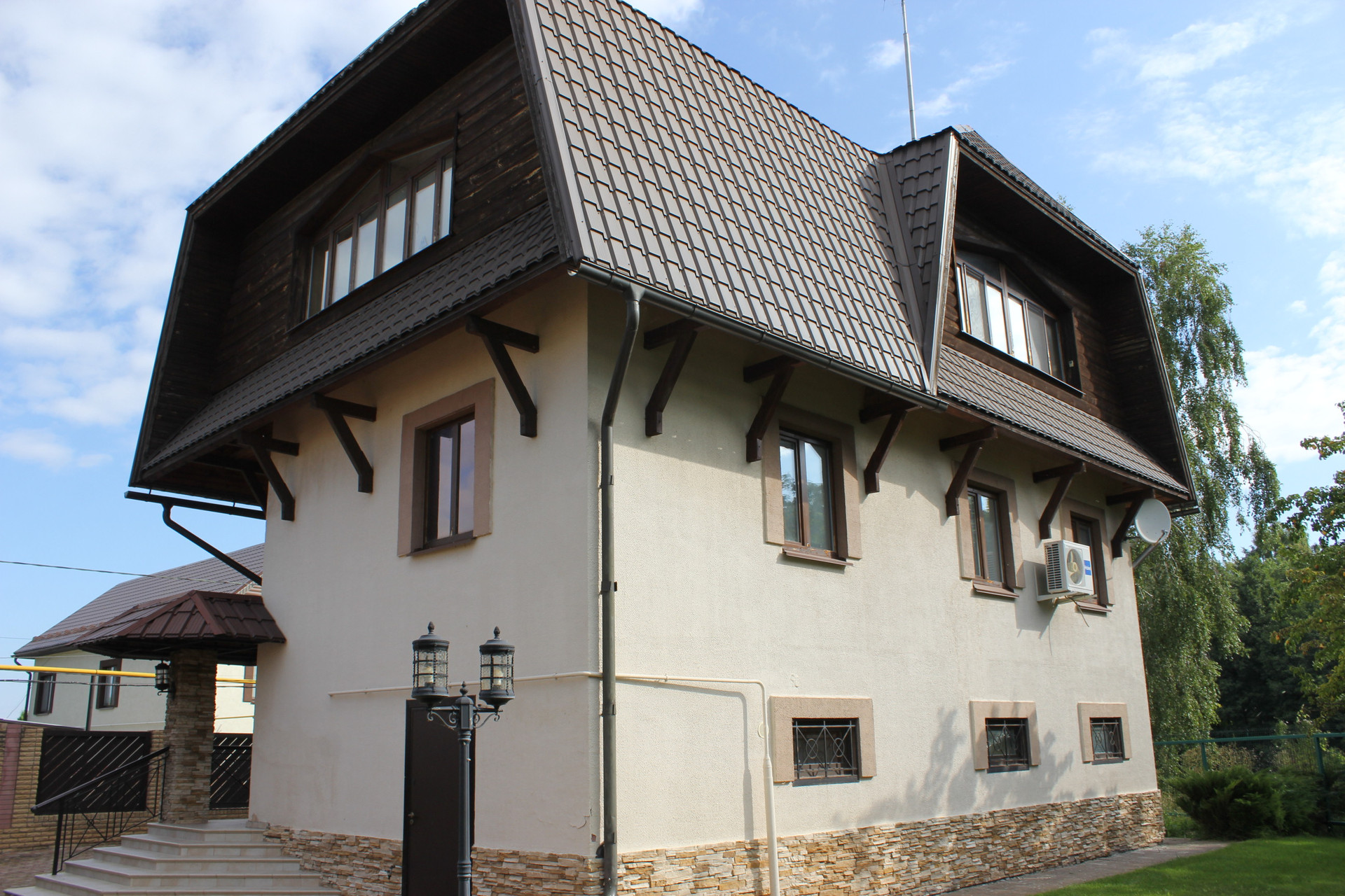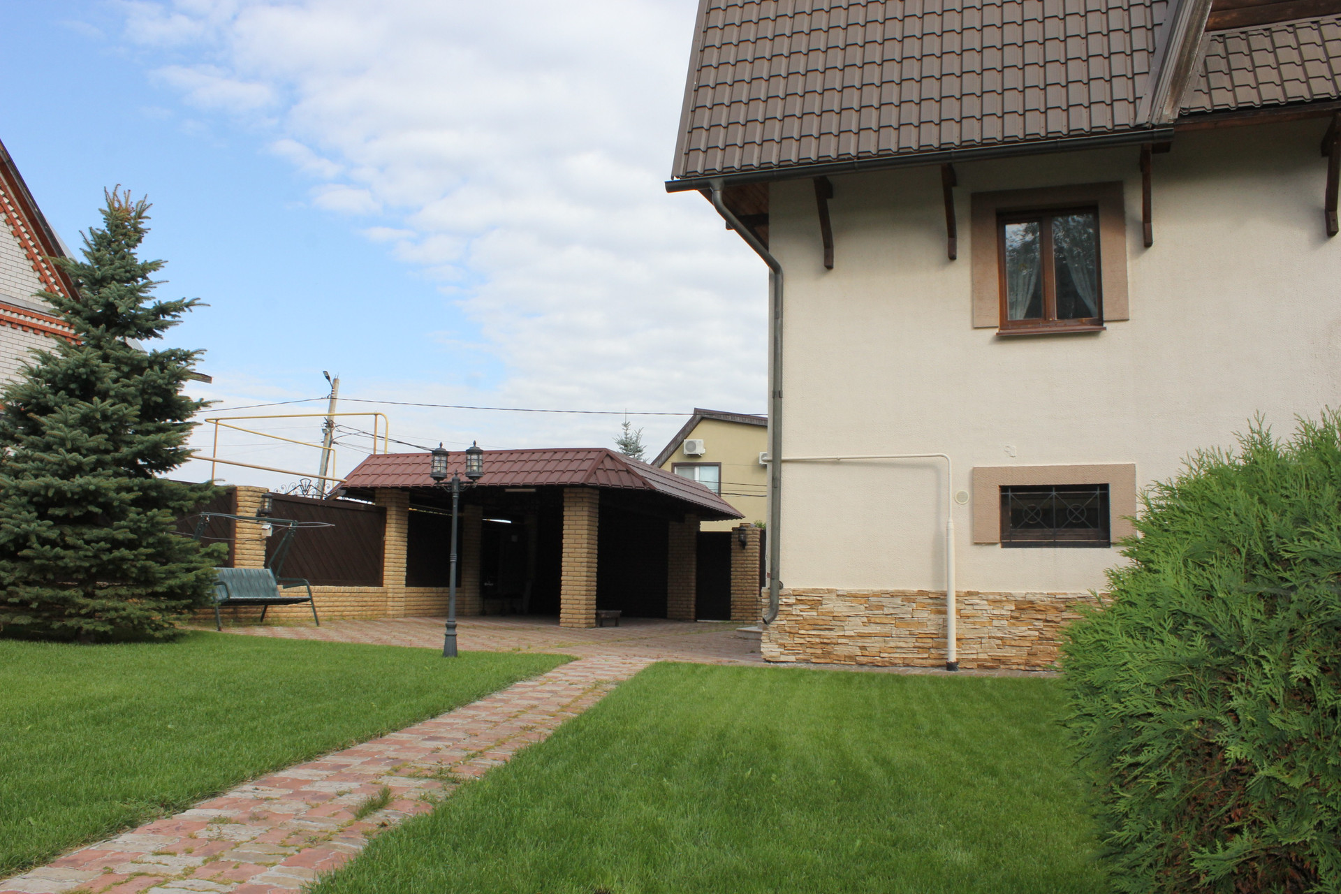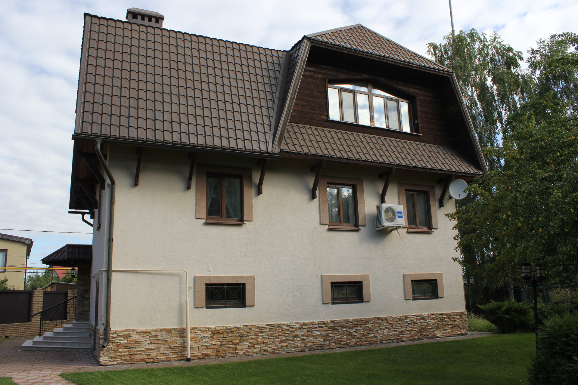 Дом с площадью 230 кв.м. находится на участке 9 соток земли.