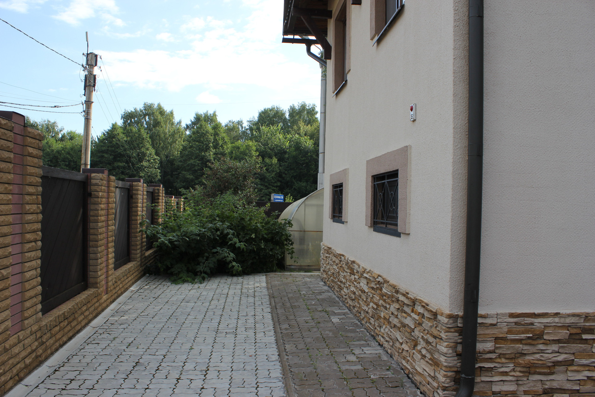 Дом расположен в лесу. Дорога до дома асфальтирована. Соседи только с одной стороны.