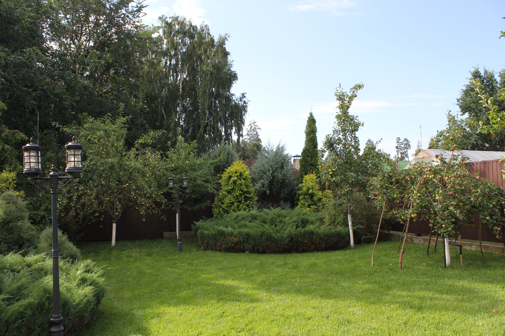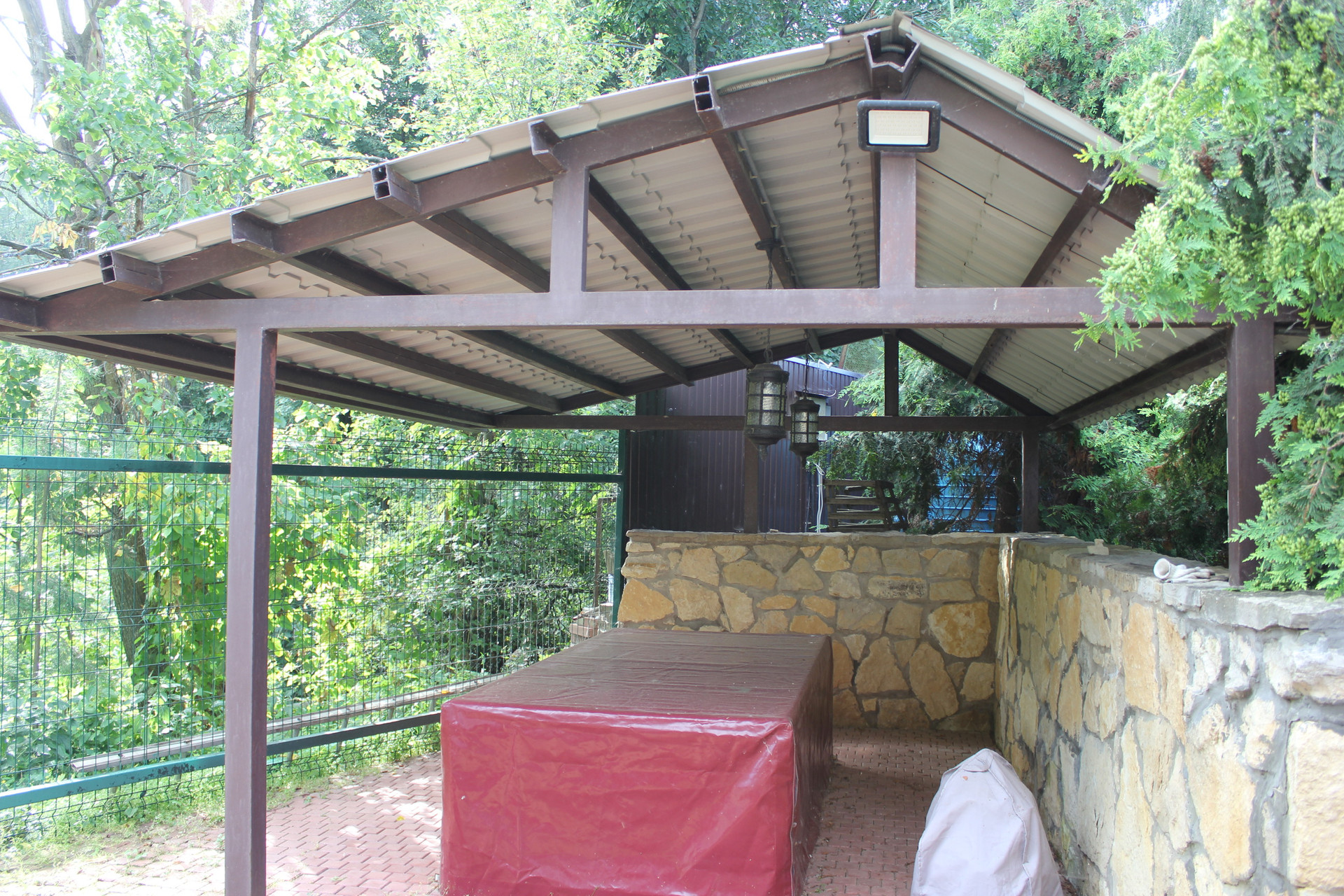 Ухоженный и грамотно распланированный участок. Зона отдыха и барбекю под навесом. Имеется зона для насаждений, небольшая теплица.