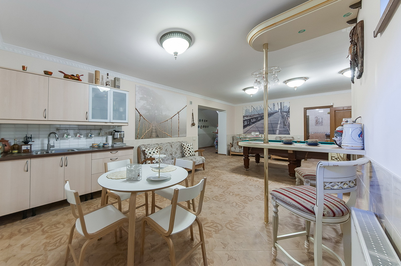 Сауна, бильярд с баром, котельная, прачечная, кладовая.