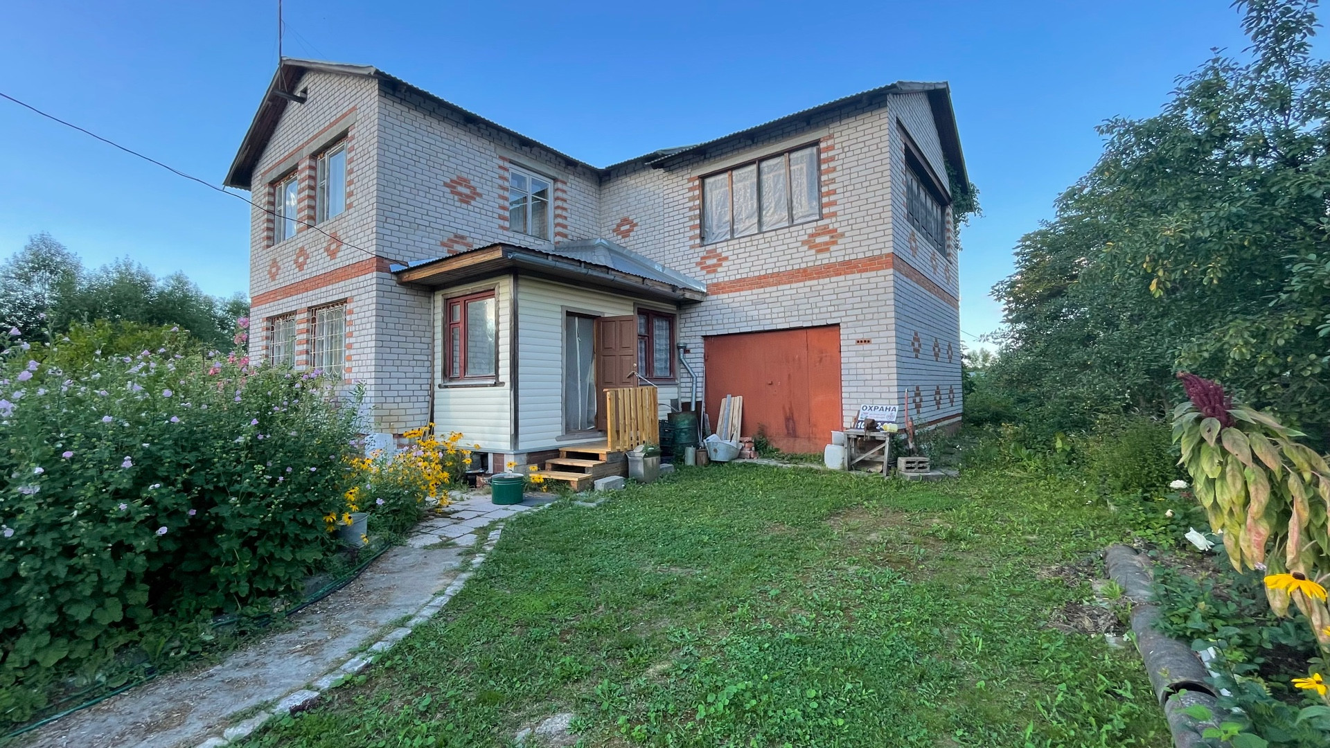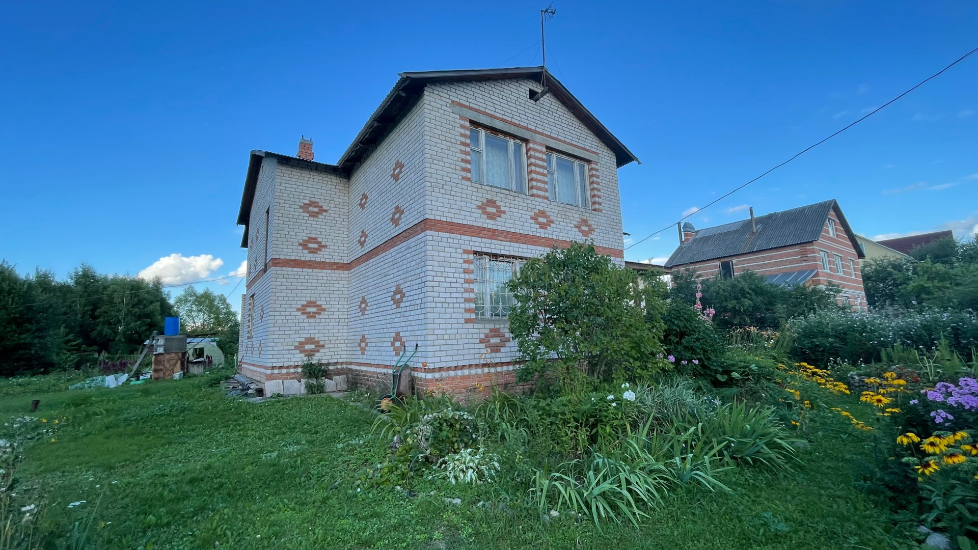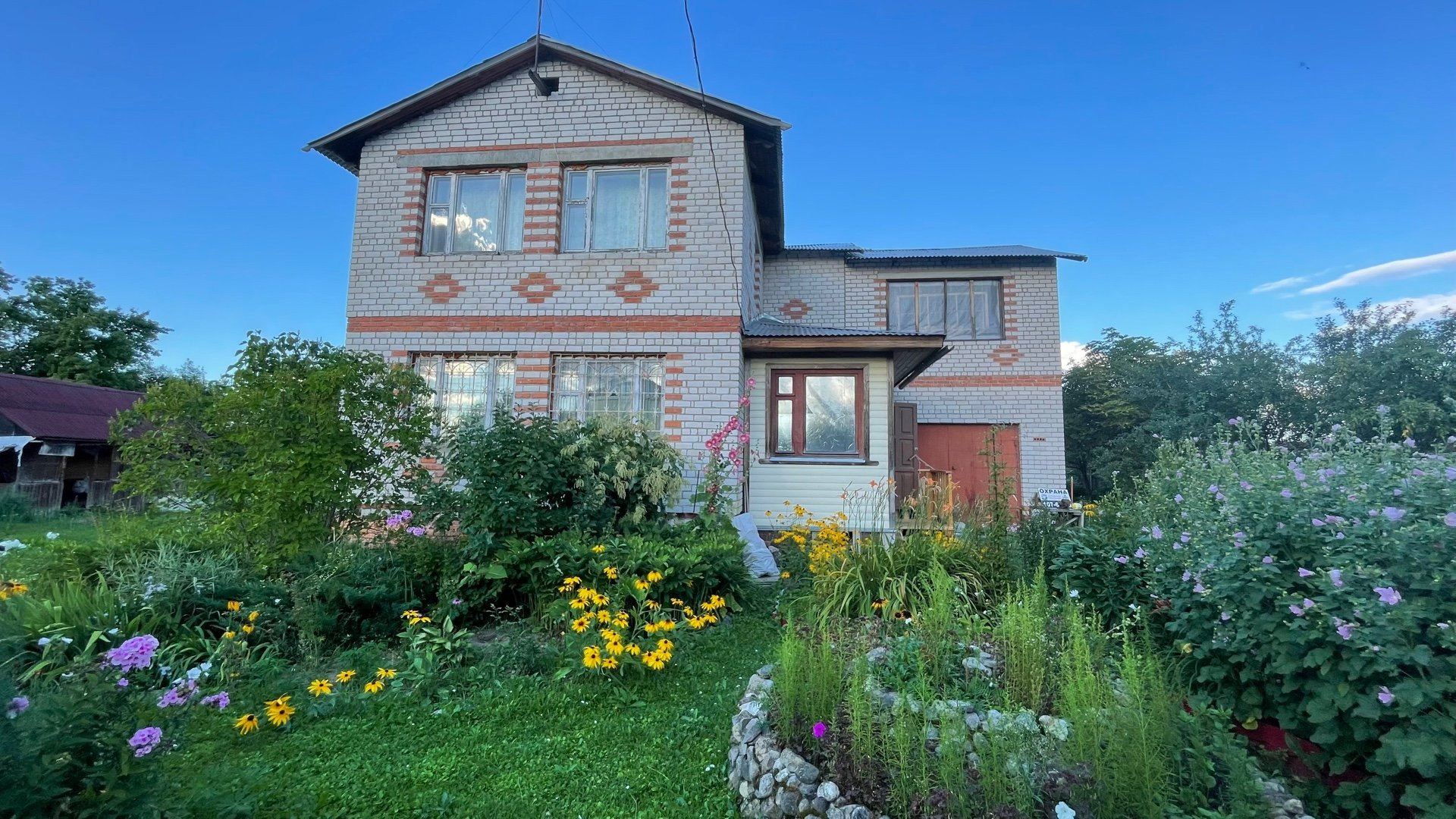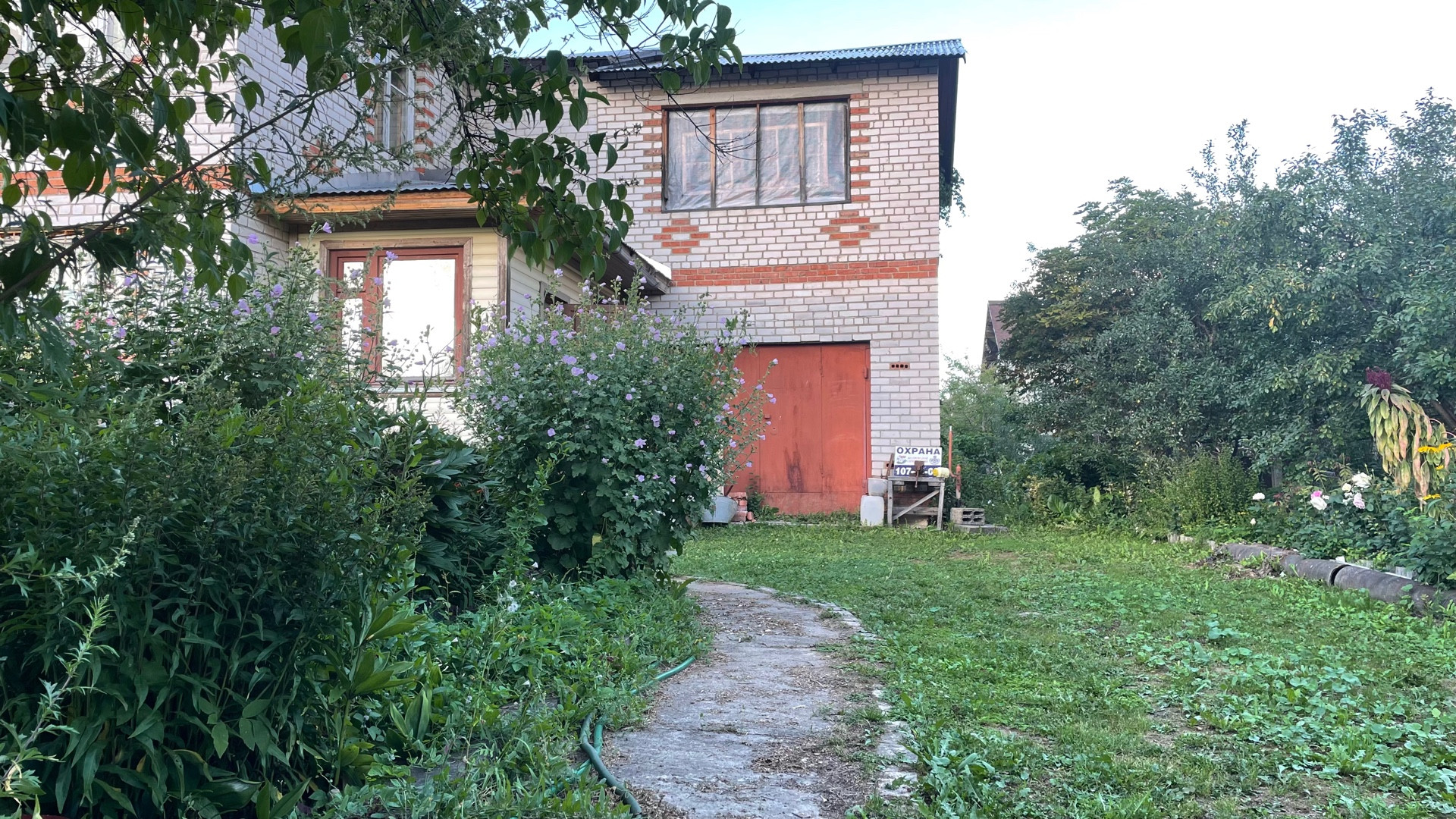Дом возможен под круглогодичное проживание, полностью выполнен из кирпича, фундамент ленточный, крыша из профнастила. Внутренняя отделка частично. Участок ухожен, облагорожен. Много плодовых деревьев, кустарников, цветов. Участок огорожен с трёх сторон сеткой рабицей, с лицевой части профнастилом.