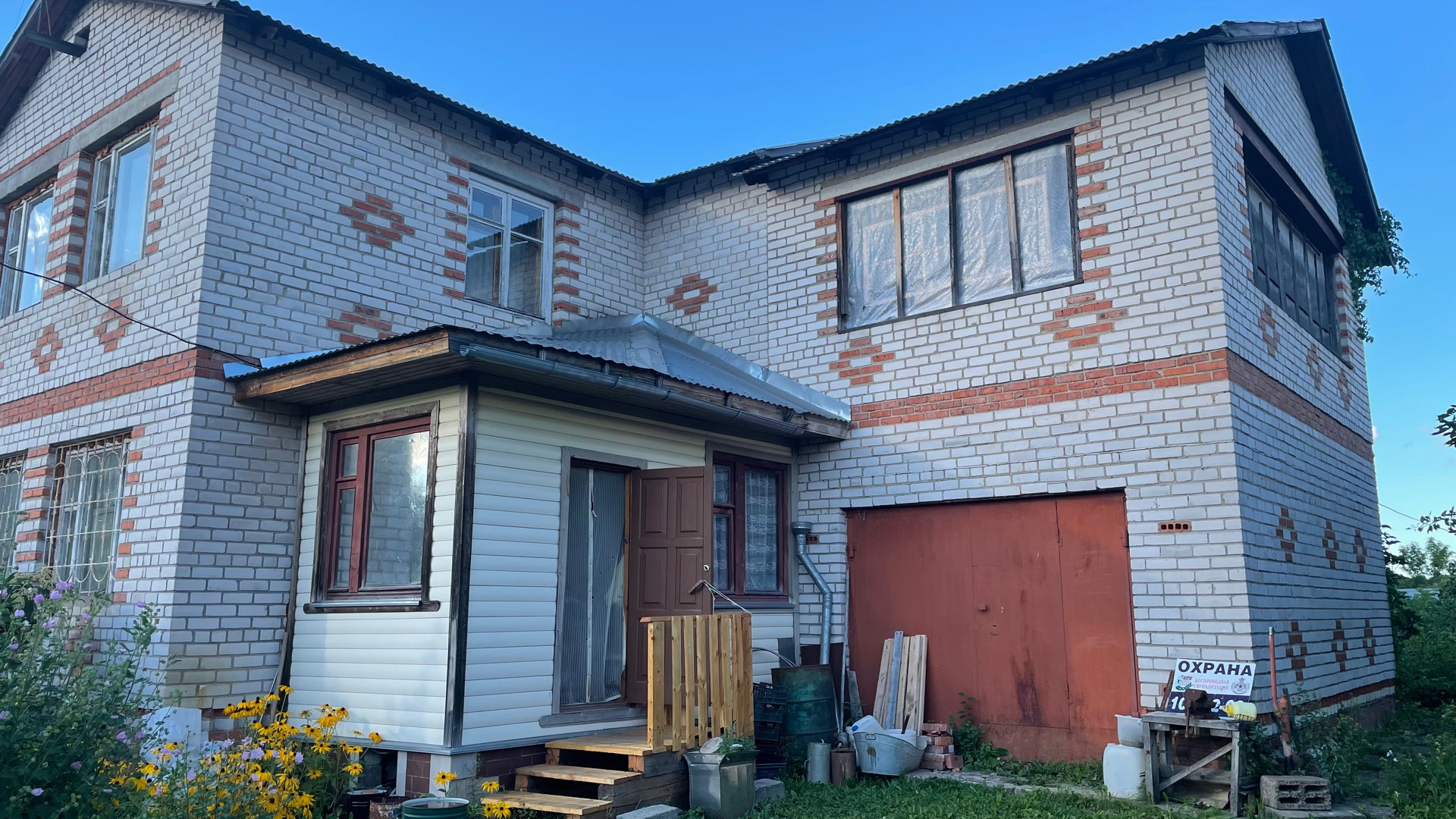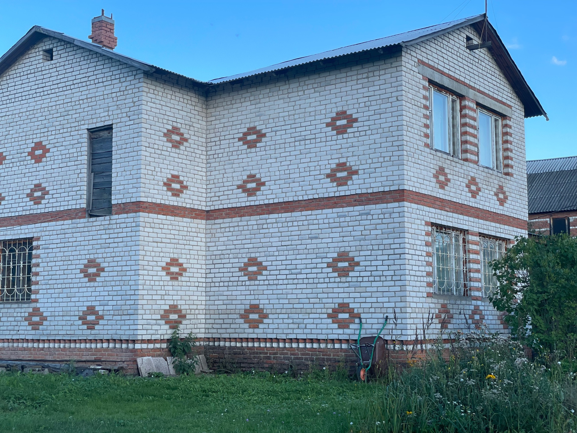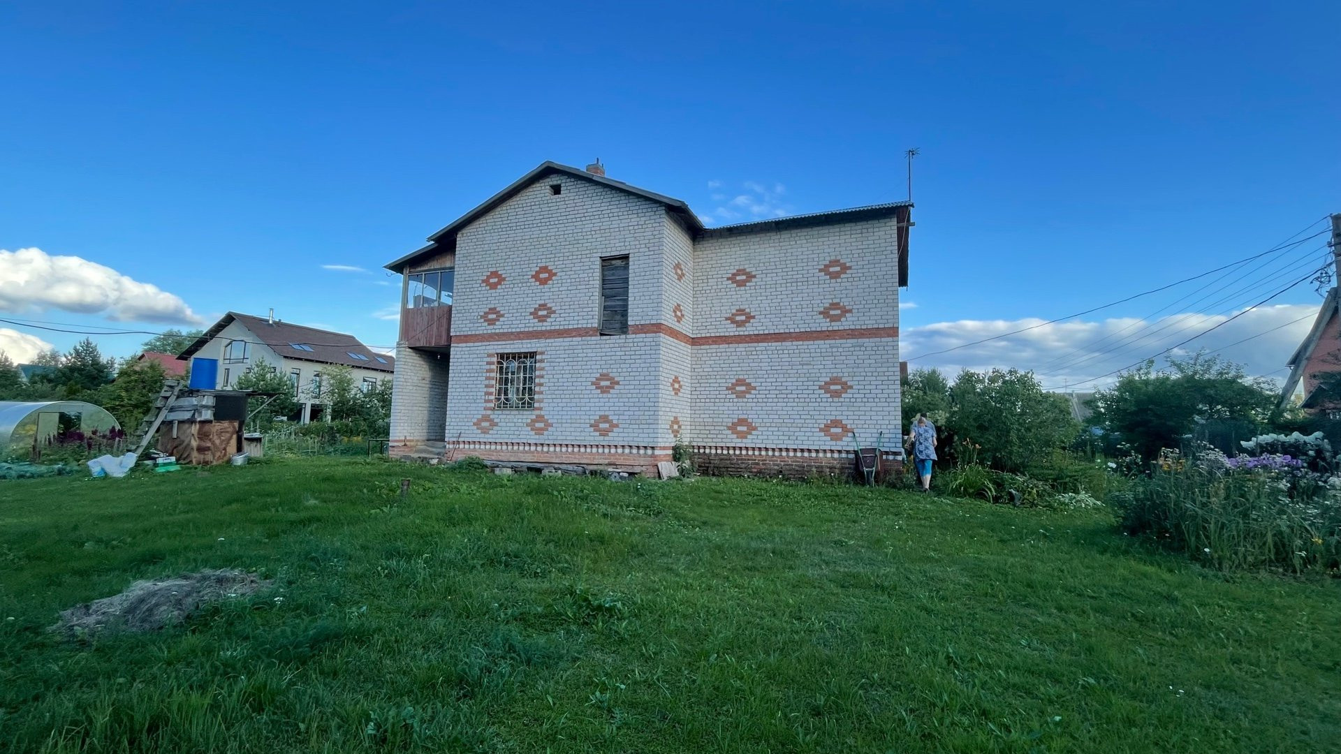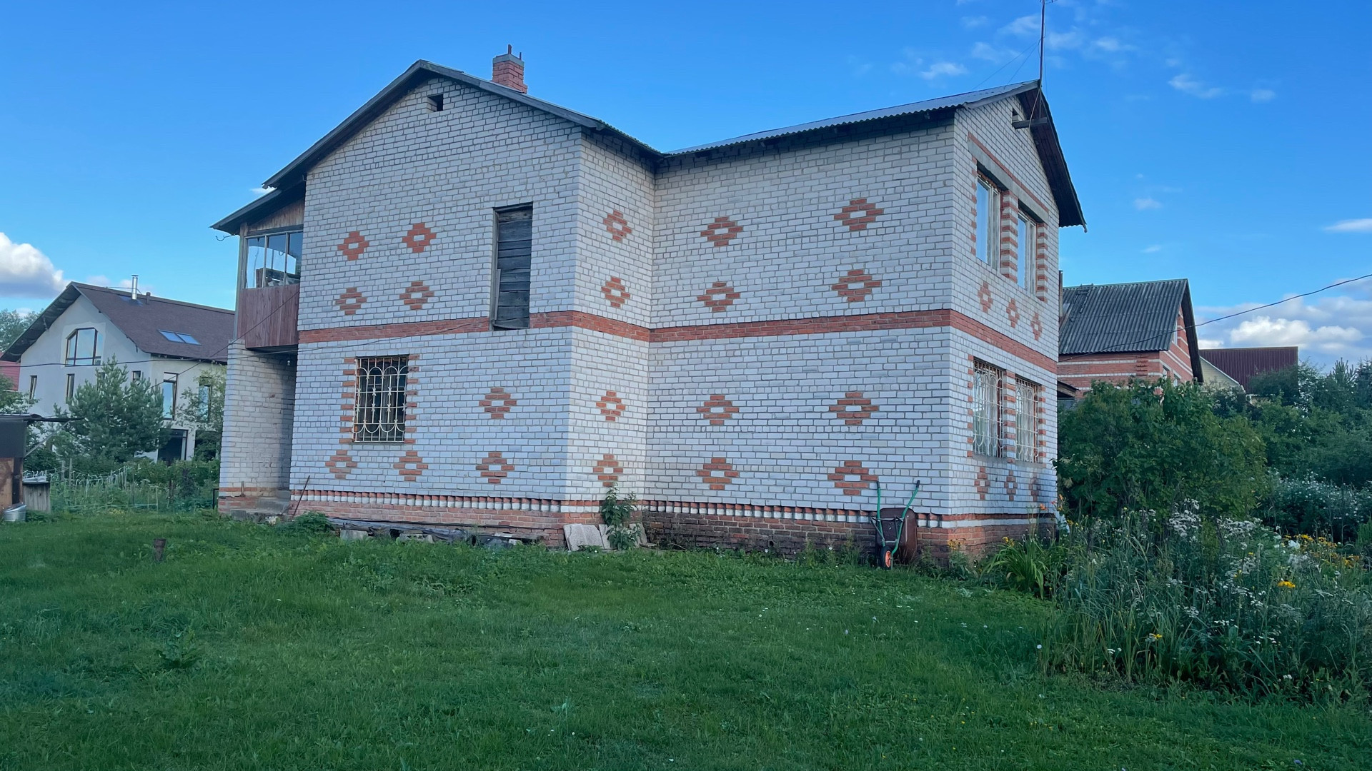Дом возможен под круглогодичное проживание, полностью выполнен из кирпича, фундамент ленточный, крыша из профнастила. Внутренняя отделка частично. Участок ухожен, облагорожен. Много плодовых деревьев, кустарников, цветов. Участок огорожен с трёх сторон сеткой рабицей, с лицевой части профнастилом.