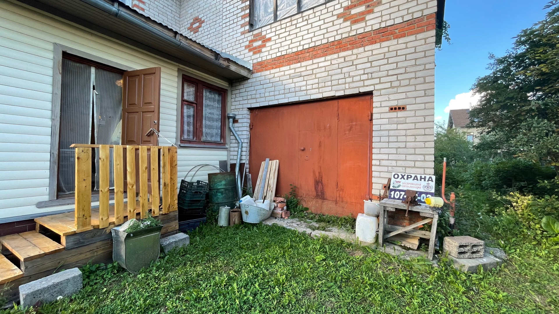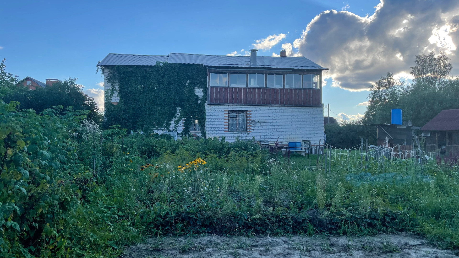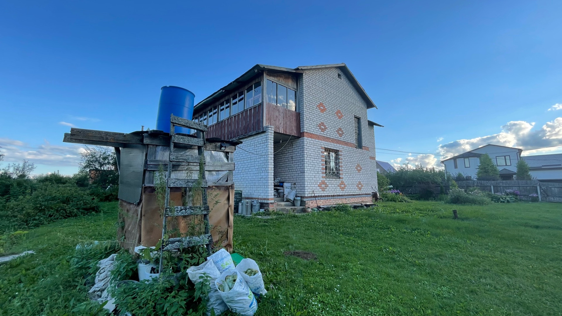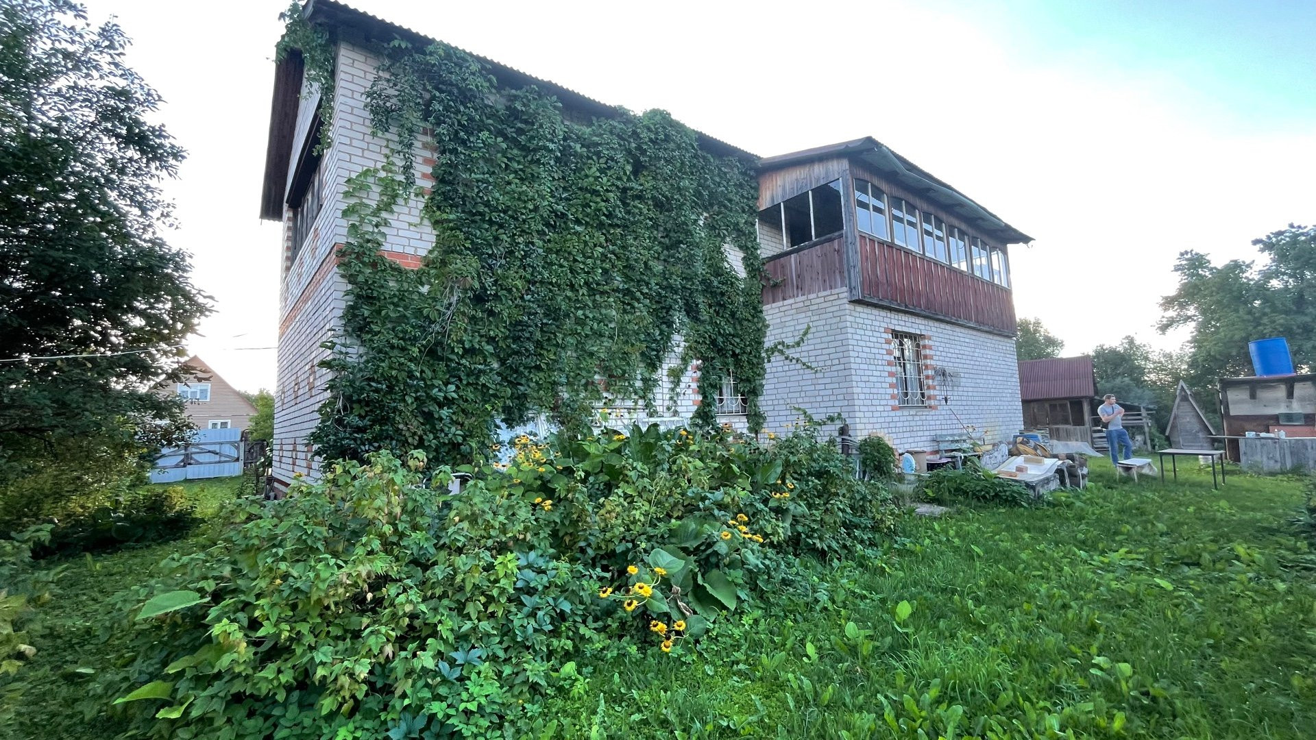 Дом возможен под круглогодичное проживание, полностью выполнен из кирпича, фундамент ленточный, крыша из профнастила. Внутренняя отделка частично. Участок ухожен, облагорожен. Много плодовых деревьев, кустарников, цветов. Участок огорожен с трёх сторон сеткой рабицей, с лицевой части профнастилом.