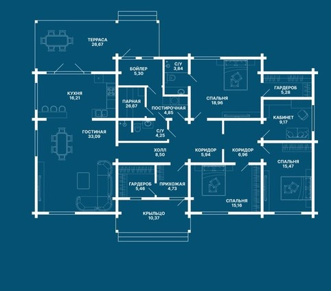 Дом общей площадью 205 м2, из которых 30 м2 терраса. Расположен на участке 10,4 сот.