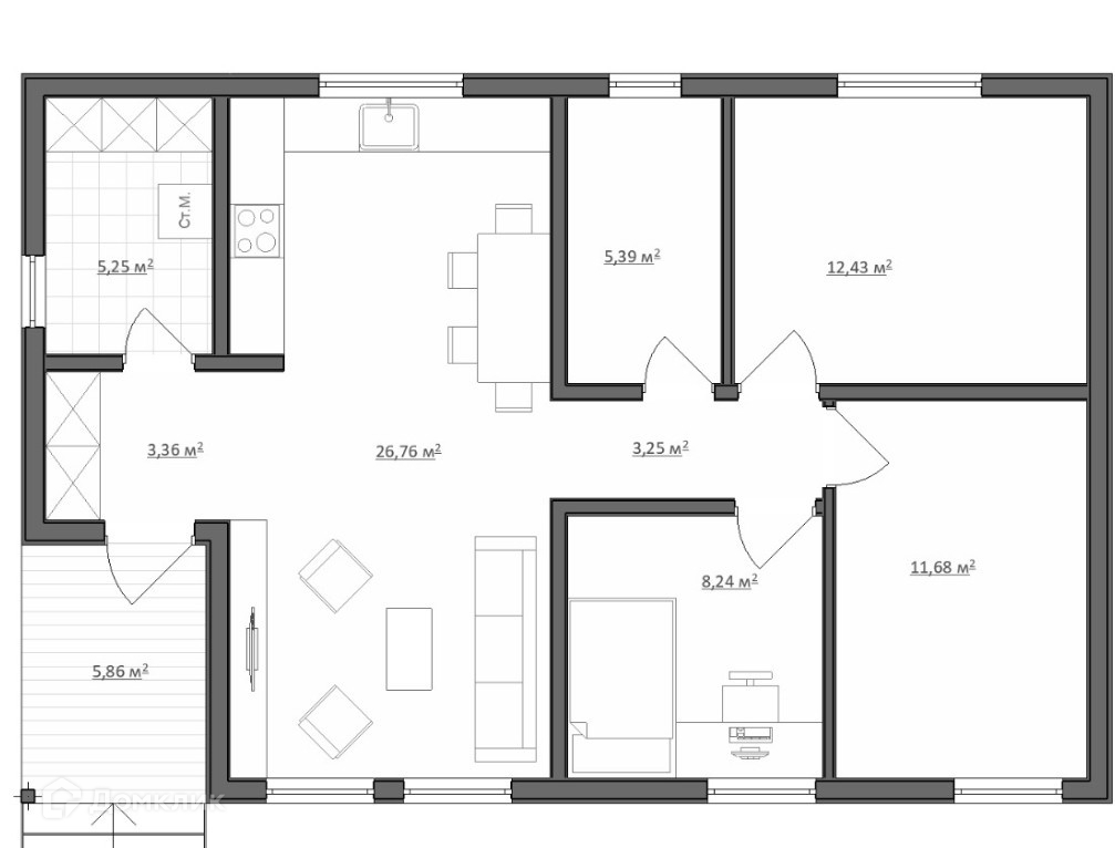 Общая площадь 90 м2