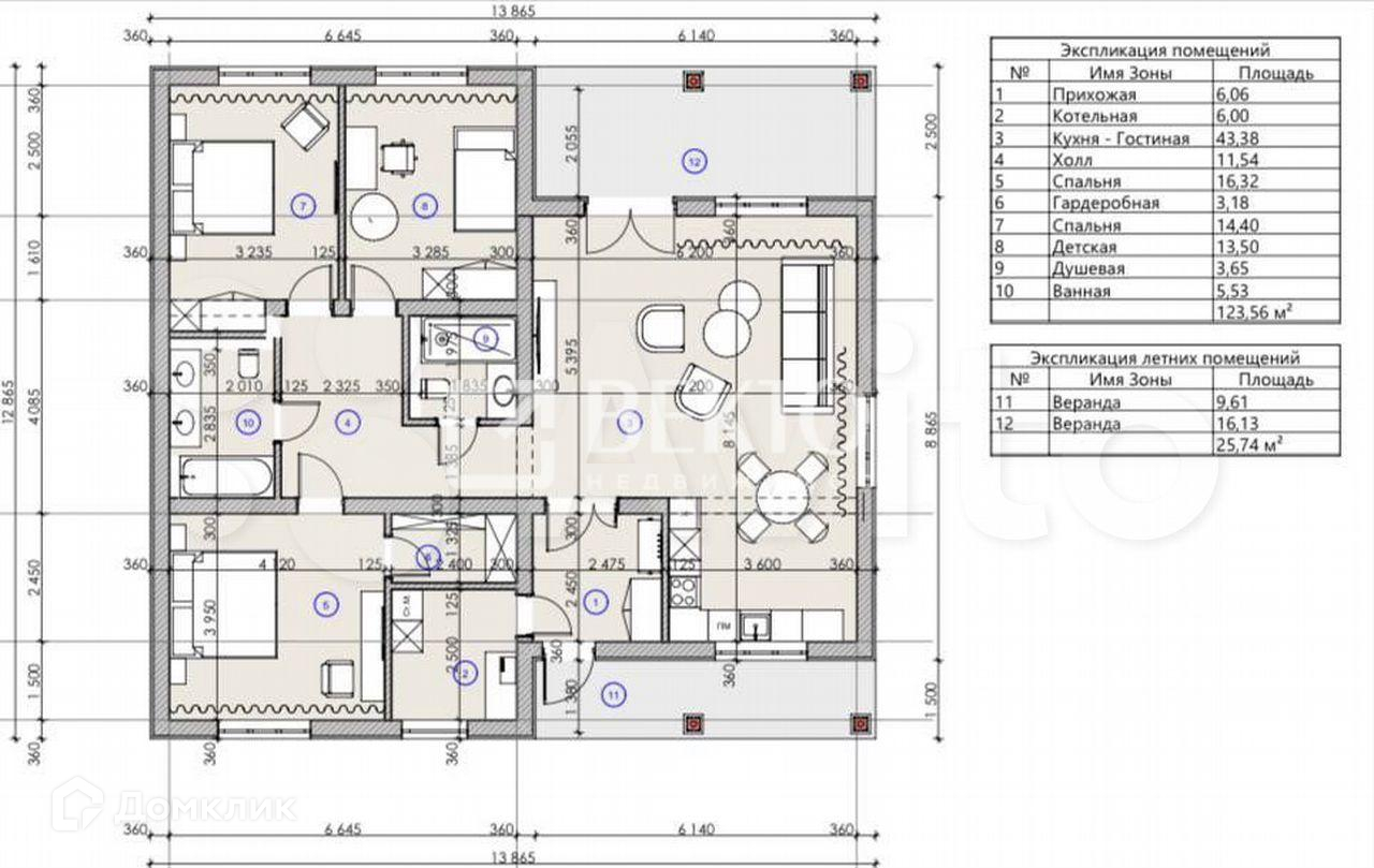 Общая площадь 124 м2