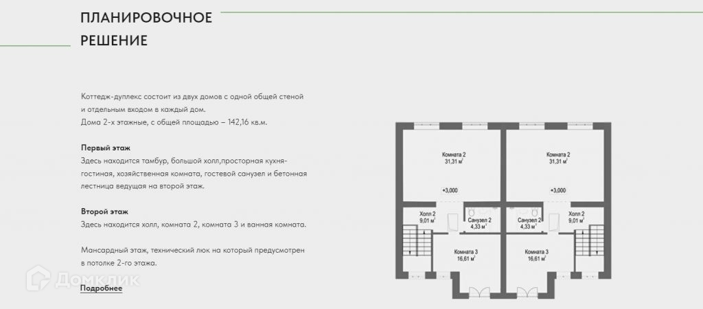 Планировочное решение у  домов зеркальное, относительно одной общей стены.