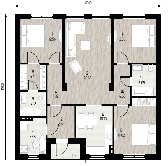 Общая площадь 114 м2