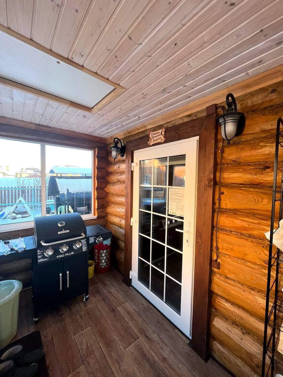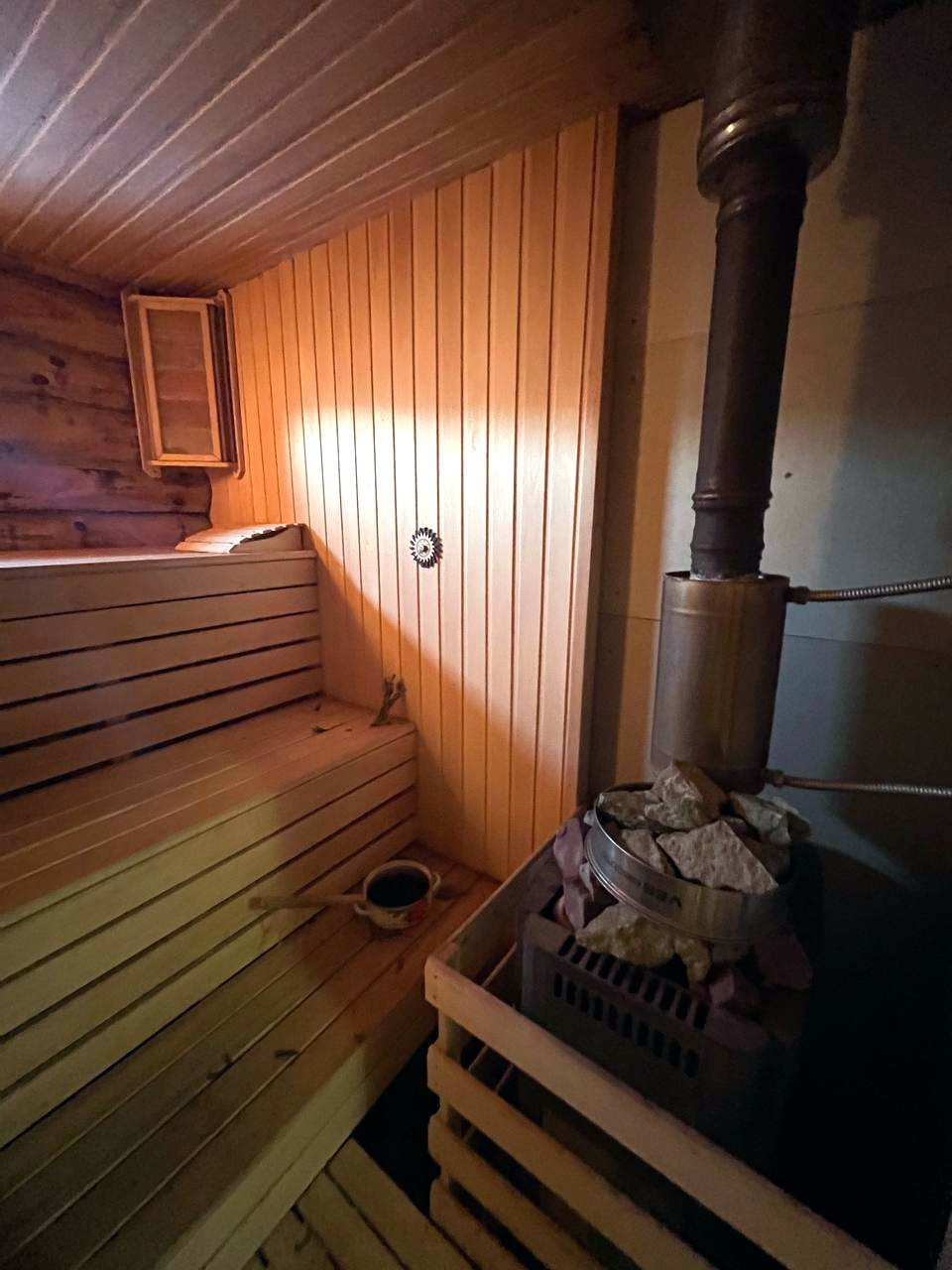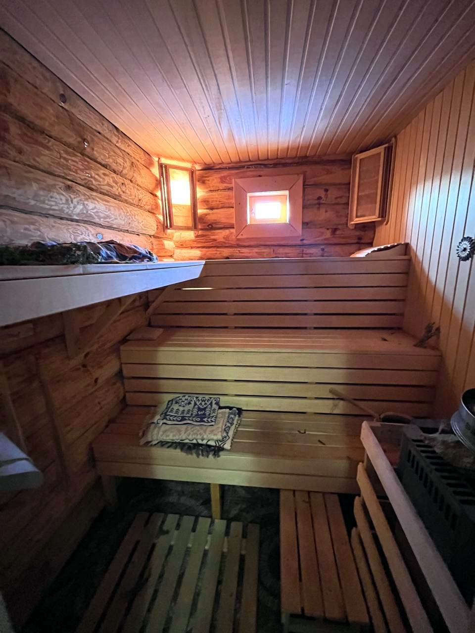 Также на участке построена шикарная бревенчатая баня 48 кв.м. – оборудована летней кухней с комнатой отдыха, камином и финской парной.