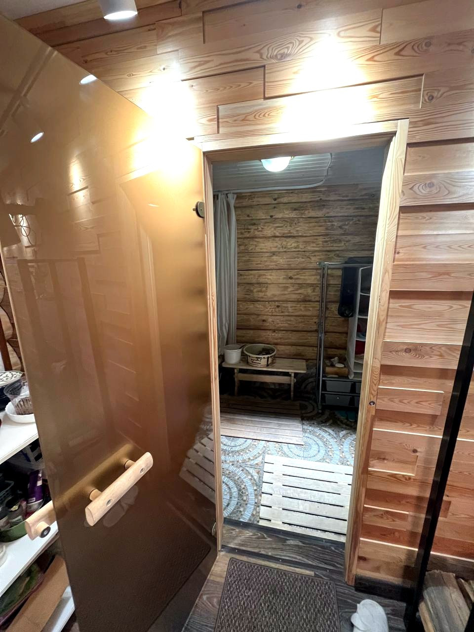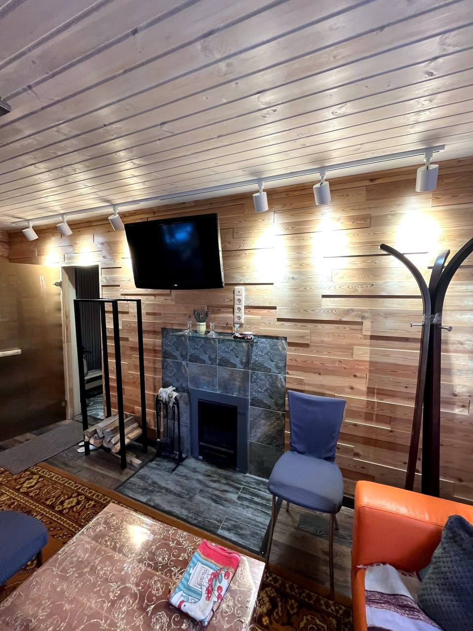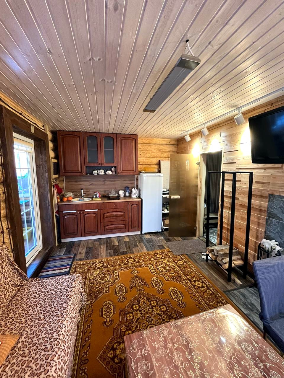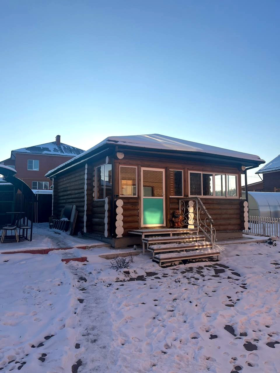 Также на участке построена шикарная бревенчатая баня 48 кв.м. – оборудована летней кухней с комнатой отдыха, камином и финской парной.